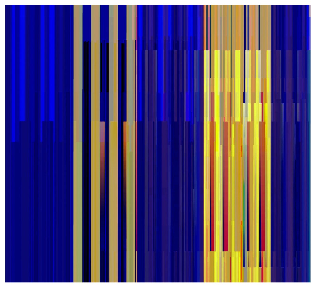 “Carlos Cruz-Diez is new to me. I like his evolving approach to colour/light. All a bit esoteric to me but a lot of colour combinations appealed. But with all due respect I kept to red, green and blue – and initially black and white. Initially I was working on a triptych, one red, one green, one blue, using letterforms to break the edges of rectangles and black shapes inside these for drama. Behind these I had blurred shapes of an alternative colour and a morphing overlay grid of the third colour. But these felt forced. I had stumbled across a zig-zag fill in illustrator. Made some simple repeated shapes with the fill then took the shapes into Photoshop and smudged them. This felt felt less forced and visually fitted in with the theme-extreme weather event which I have been contemplating.”
