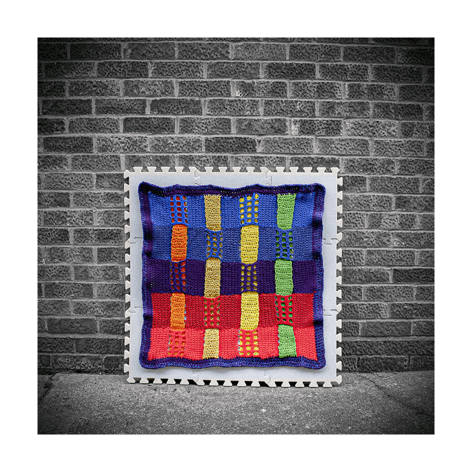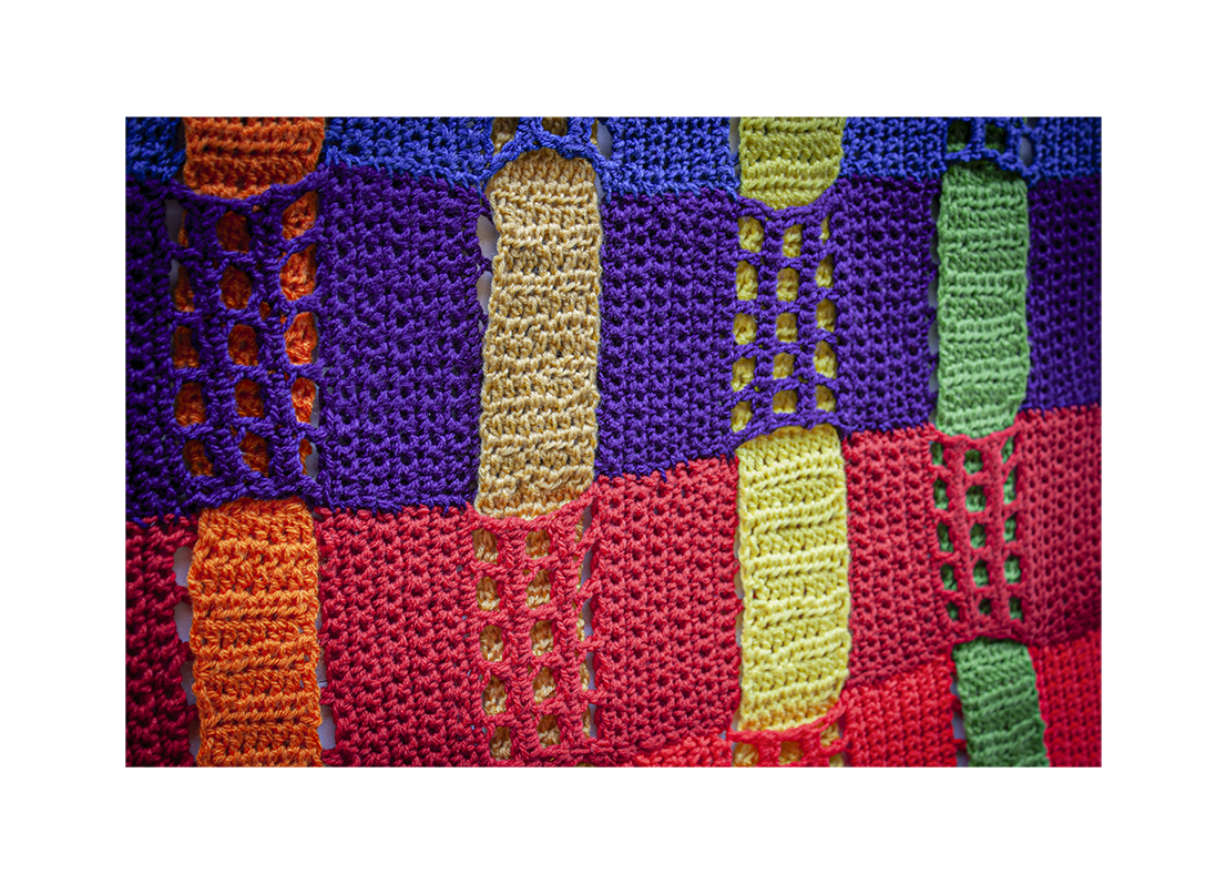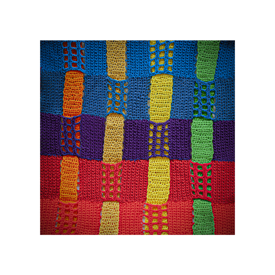 “I love the way Cruz-Diez plays with colour, exploring the interaction between colours and the quite dramatic changes wrought by subtle shifts in light and viewpoint. I immediately reached for my yarn stash and a crochet hook. Loved making this!“