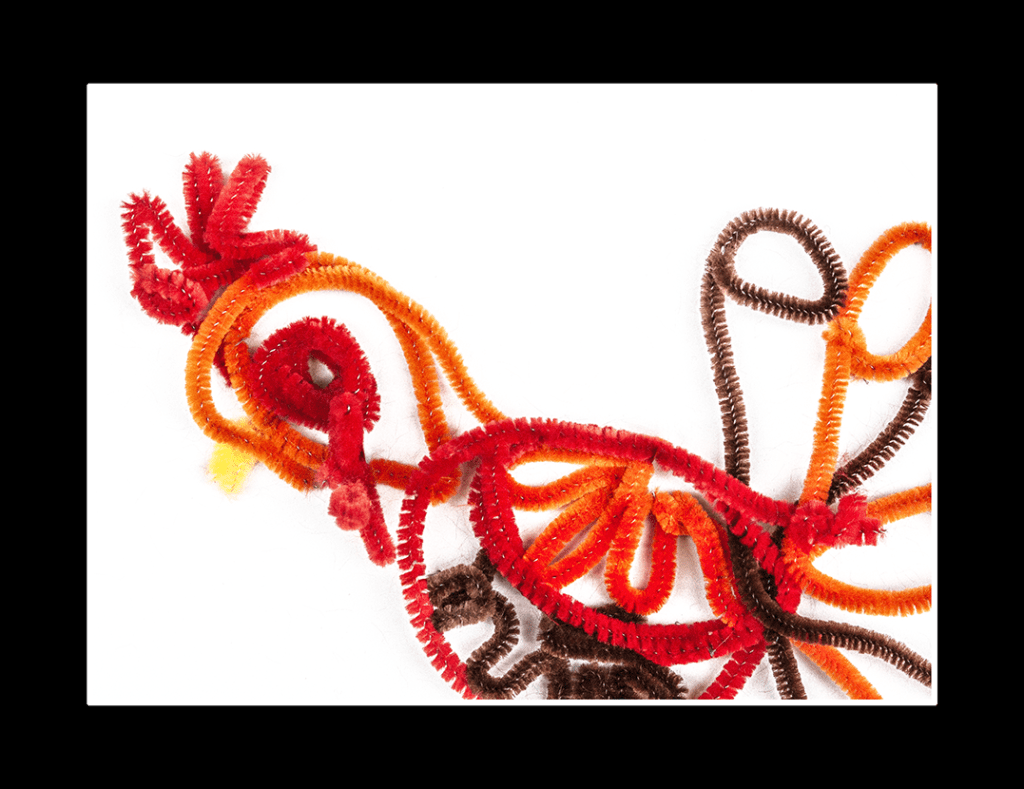 “I dabbled about with a couple of different responses to this prompt, with no particular success or satisfaction. Then my eye fell on a pack of brightly coloured pipe-cleaners and I spent a very jolly afternoon creating chickens with their own distinctive style!”