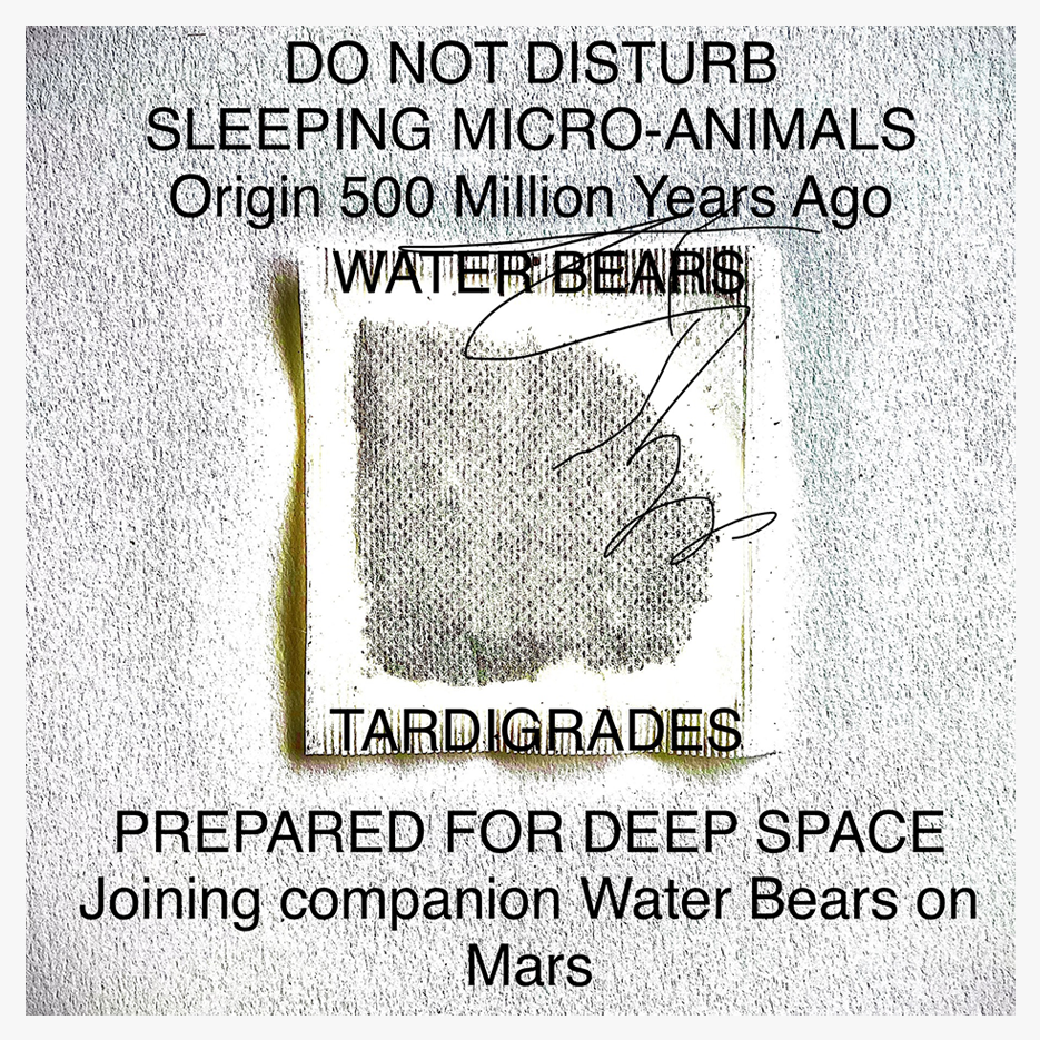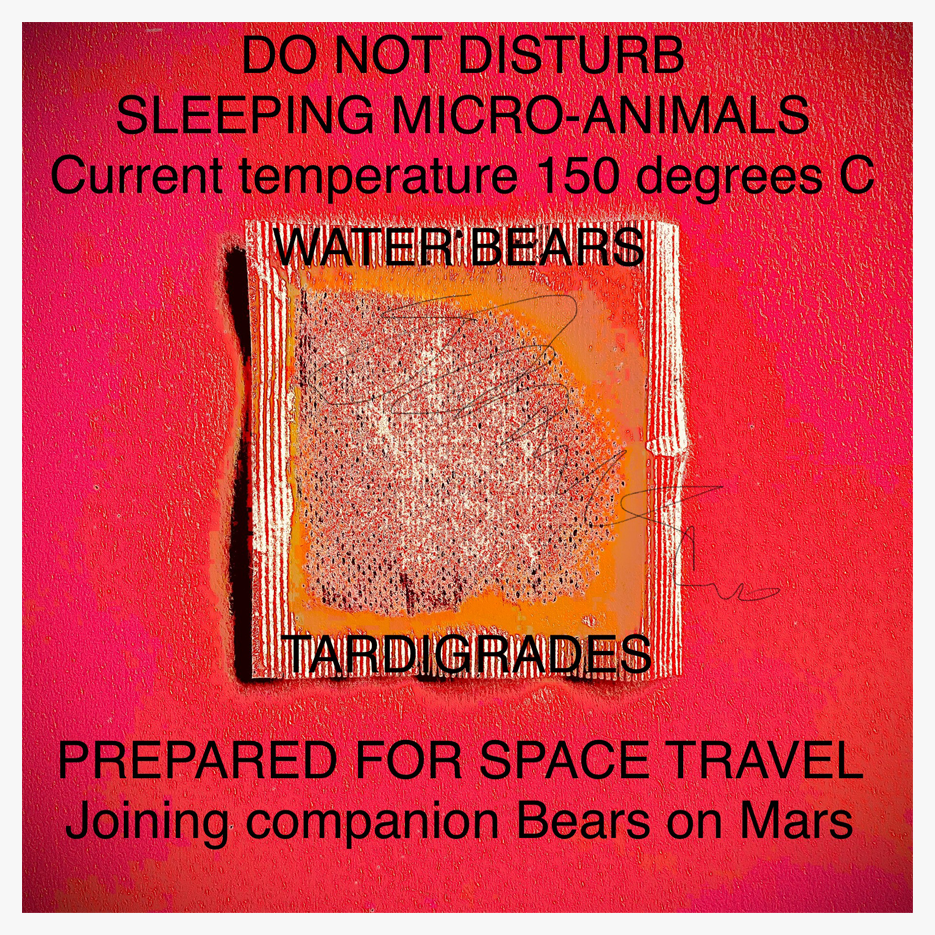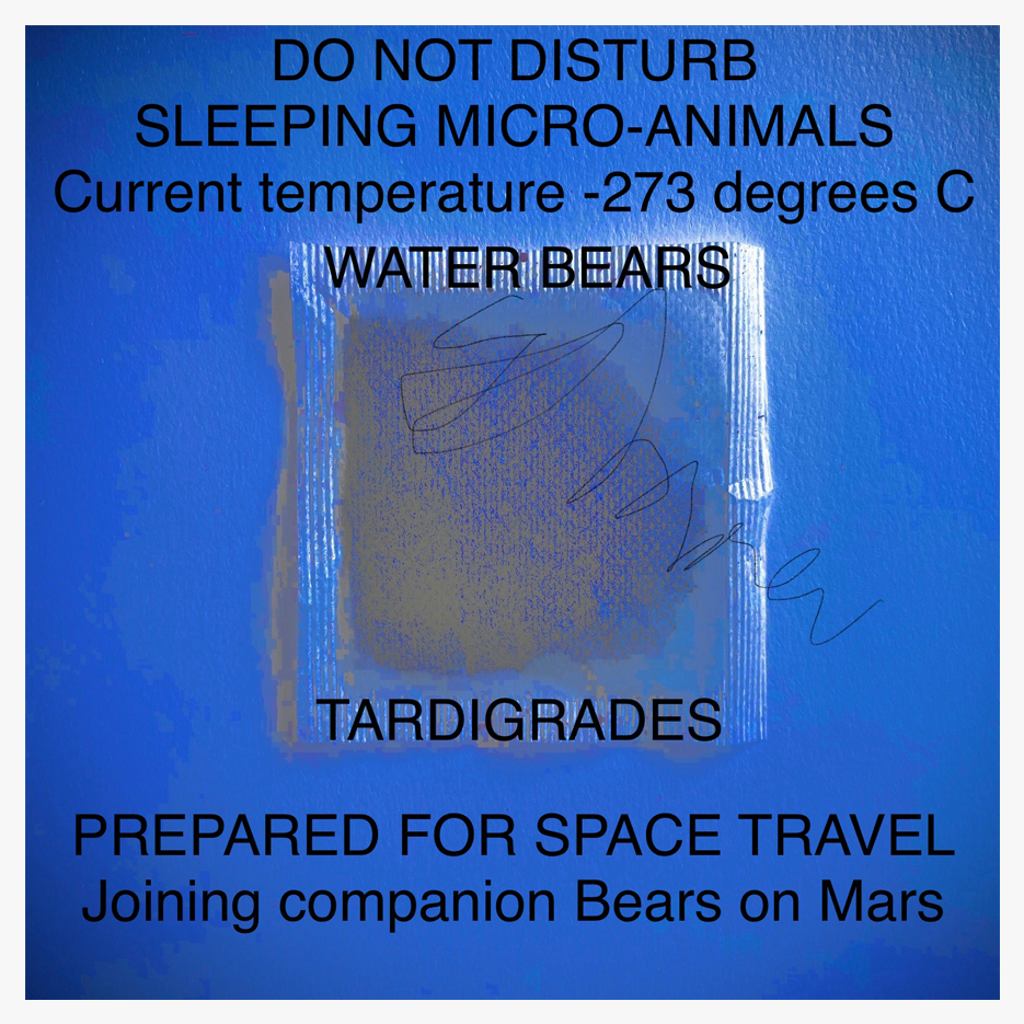 “Deep Space – what a puzzle – until I discovered the remarkable Water Bear or Tardigrade populating Deep Space and happily surviving on Earth. A creature capable of suspending metabolism for 30 years in extreme temperates, and a valued food source for many predators. Their date of origin blows you away. Said to survive complete global mass extinction. Who knew that these little Bears were once carefully packaged and labelled to join our astronauts on space missions, in the name of research. Weird and wonderful.”