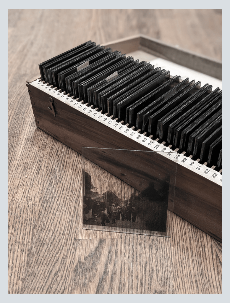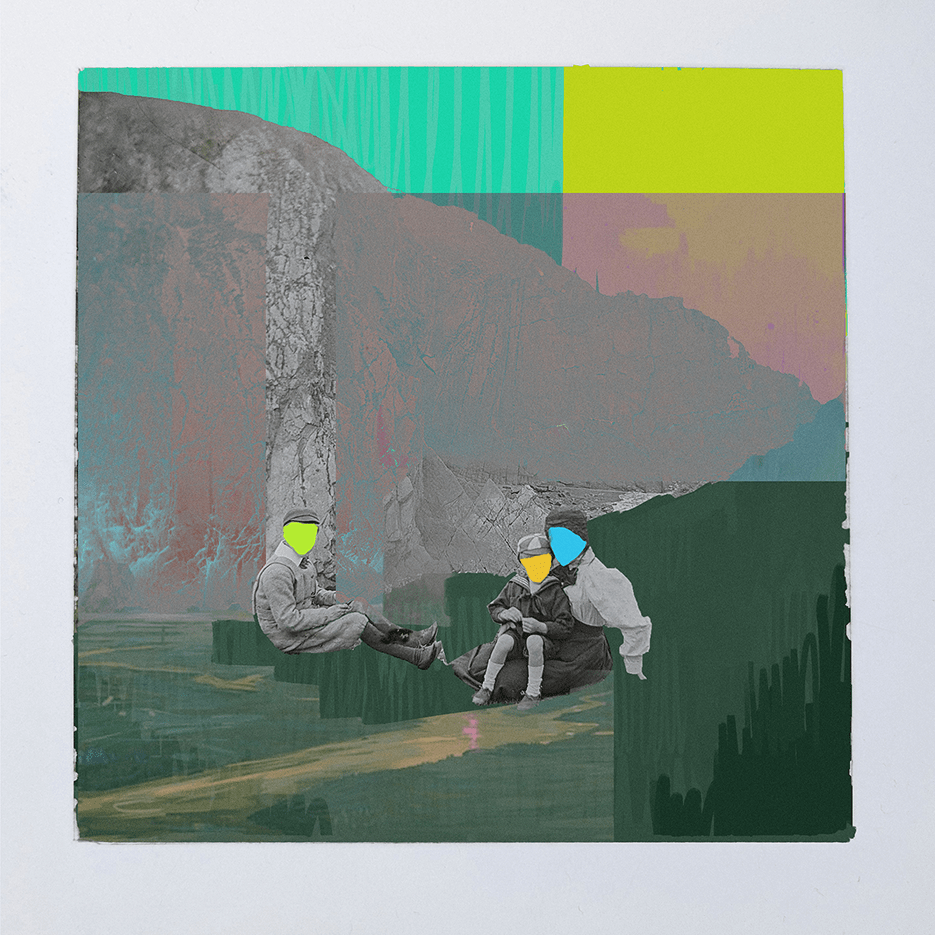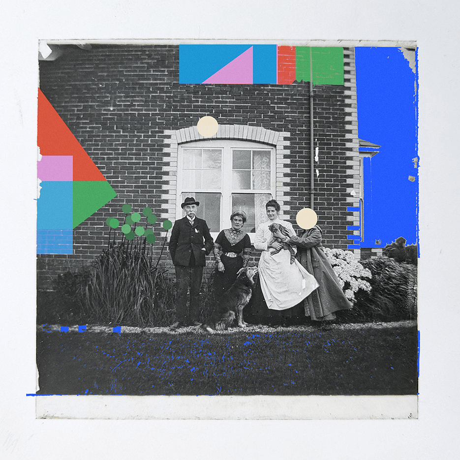 “I’d never heard of Mainie Jellett before this prompt, but my initial response was all about those amazing formations and compositions of block colour. As a quick win, I wanted to create a series of very quick colour blocks that at least held some of the complexity and perhaps history seen in Jellet’s work. And so I made these creations – all simply colour responses to historic photographs I’ve collected over the years. The particular photographs used here are from a set of Victorian photographic glass slides I found in a charity shop once. I have no clue as to the actual setting or location of the slides, but I think they are probably Magic Lantern images – kind of fake scenarios used to tell stories in local theatres. Nevertheless, they all still suggest full worlds lost in time – families, pets, buildings, holidays that somehow say so much, and due to their potential artificial nature, possibly nothing all at once.”