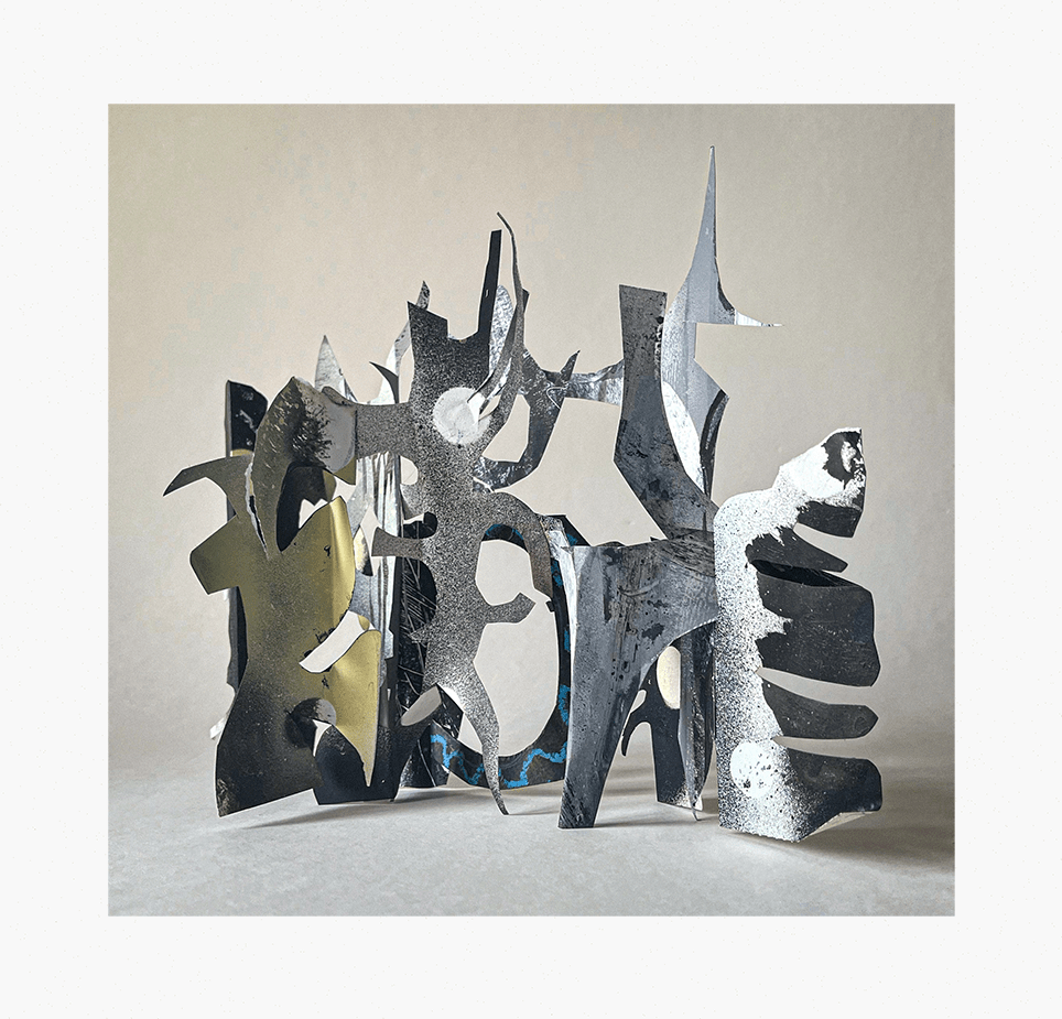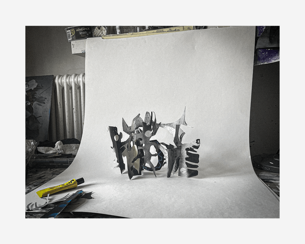 “I love the Kick-About for many reasons, it introduces me to artists I didn’t know or makes me look at work I thought I was familiar with in a new light. This week‘s prompt is the former of these scenarios; I had never seen images by Mainie Jellett before and it was a pleasure getting to know this artist and read about her story. I find the period of art history when Mainie was working so fascinating, it seems such a dynamic and creative time; the art rule-book was torn up and artists freed themselves from traditional approaches. They started exploring whole new landscapes of possibilities, each new experiment paving the way for yet more discoveries, and women became more prominent in the latest developments. For my contribution this week, I‘ve taken some paper offcuts that have accumulated in the bottom of my boxes of collage papers and glued them together to make a sort of abstract forest. Before the likes of Mainie Jellett, working in this way would have been seen as a bit mad, but now I can call it fine art, haha, so bravo to them!”