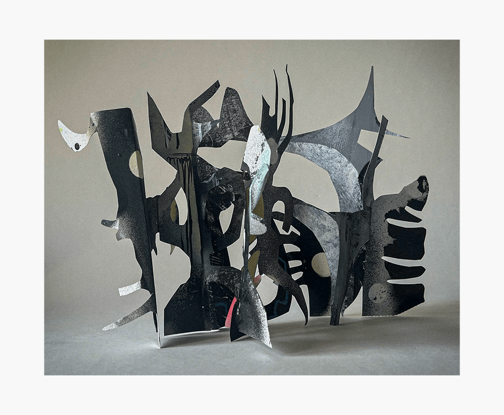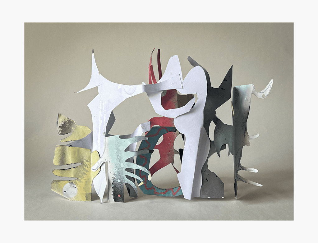 “So these digital collages began as physical collages of torn sugar paper to produce textures from which I could cookie-cut these other shapes. I wanted to emulate some of the painterly surfaces of Jellett’s paintings, but also some of the formality of her layered shapes.“