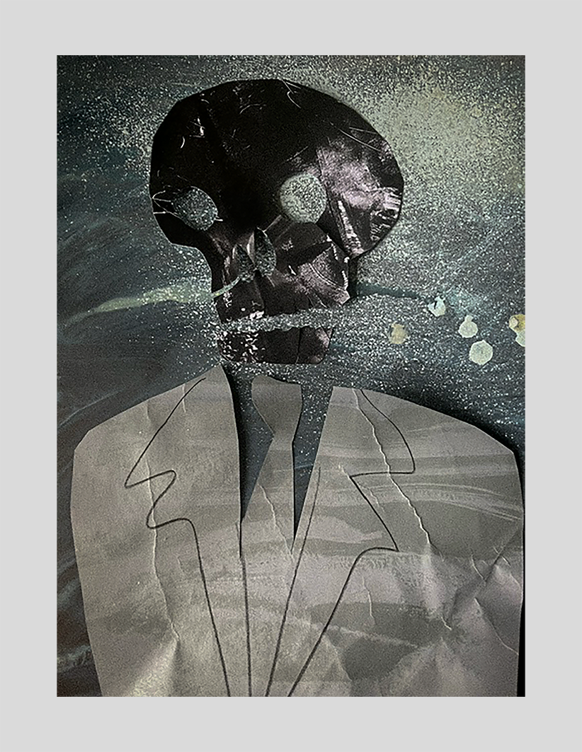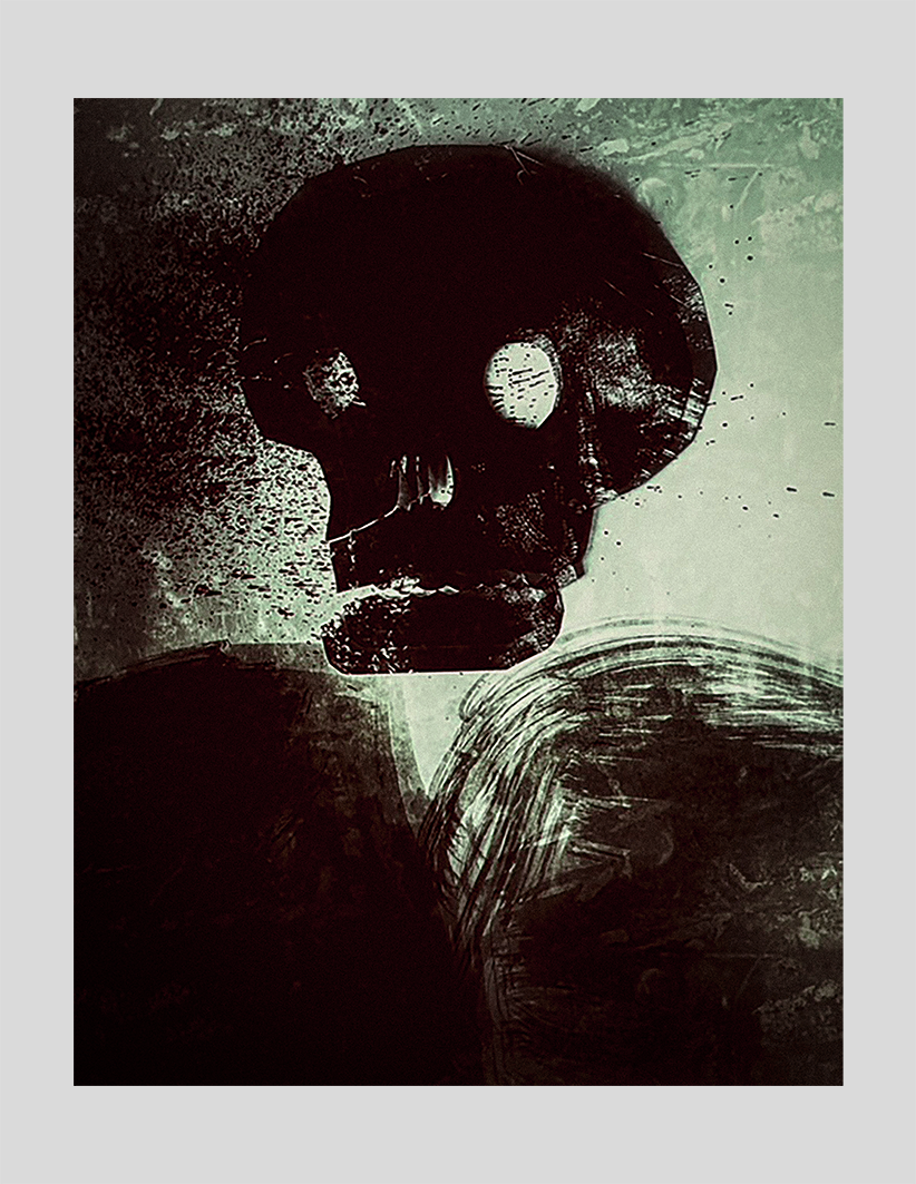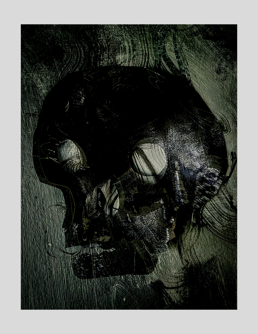 “It feels like the world is one big algorithmic taunt. Lots of hokus locus in between day to day living. I don’t think most people ask the big questions what makes you feel fulfilled, what do you want to try to do before you leave for good. Hence my flippant photo. I went back and made a photo montage of skull pics but it could change…“