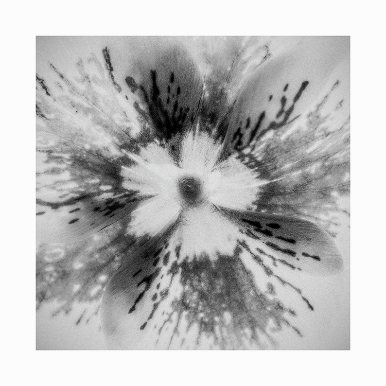 These photographs are of the flowers of Helleborus orientalis – or the Lenten Rose. I love hellebores, on account of the secret they keep of their extraordinary markings (as they keep their flower heads bowed low). I picked a few, pressed a few, and then photographed them on a sheet of perspex over a strong light on longish exposures to disappear the actual structures as much as possible – in response to the x-ray theme of The Kick-About No. 103. I was left with these striking, ink splashes that reminded me of this previous KA effort from ages back.