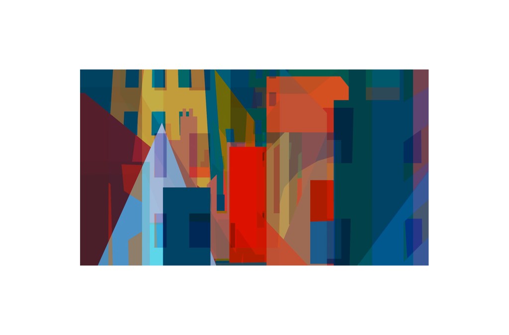 “I’d never heard of Mainie Jellett before this prompt, but my initial response was all about those amazing formations and compositions of block colour. As a quick win, I wanted to create a series of very quick colour blocks that at least held some of the complexity and perhaps history seen in Jellet’s work. And so I made these creations – all simply colour responses to historic photographs I’ve collected over the years. The particular photographs used here are from a set of Victorian photographic glass slides I found in a charity shop once. I have no clue as to the actual setting or location of the slides, but I think they are probably Magic Lantern images – kind of fake scenarios used to tell stories in local theatres. Nevertheless, they all still suggest full worlds lost in time – families, pets, buildings, holidays that somehow say so much, and due to their potential artificial nature, possibly nothing all at once.”