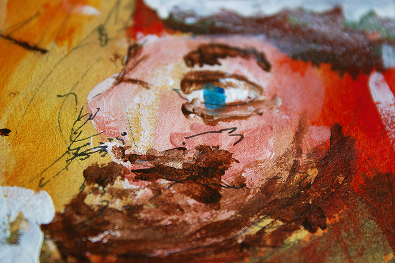 “I dug out an old photo from one of the musicals I designed, which I thought would fit this perfectly… or at least the role reversal, importance of beard, and colour (that was achieved by layering acetate over the black and white image).“