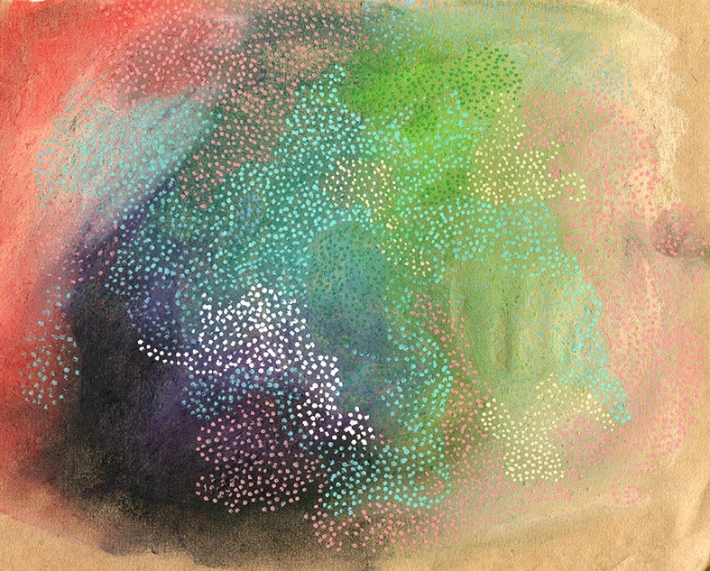 “For my return to the creative carnival that is the fabled Kick-About, I turned to my growing interest in reportage illustration in hopes of capturing the movement and eccentric colours of these wonderful creatures as accurately as possible. After finding footage of these feathered fireworks to work from, I took markers, ink, pencils, and pastels to paper and tried to sketch their shapes and tones in real time—resulting in a blur of dancing show-offs!”