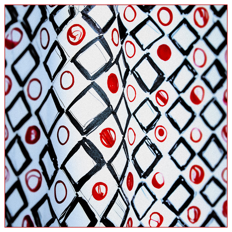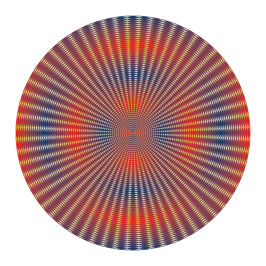 “Op art was an early sources of wonder – smooth colour blends, fake perspective and lots of detail. So it was fun to revisit here – of course repeat patterns and colour blending are easy to achieve on a computer so I tried to introduce texture and played with depth in three attempts. The star pic is playing with China flag colours and US flag colours – seemed a good idea as China transitions slowly to the worlds major super power…“