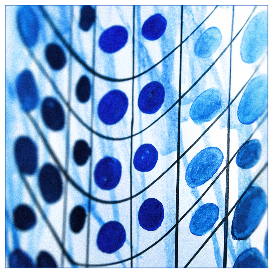 “Thank you Victor Vasarely and The Kick-about! That was a fun few hours spent with ruler, french curve and marker pens. The red, white and black reminded me of the colour scheme of my son’s teenage bedroom (late 1980’s), but the blue tones were much more soothing – more like an exercise in mindfulness!”
