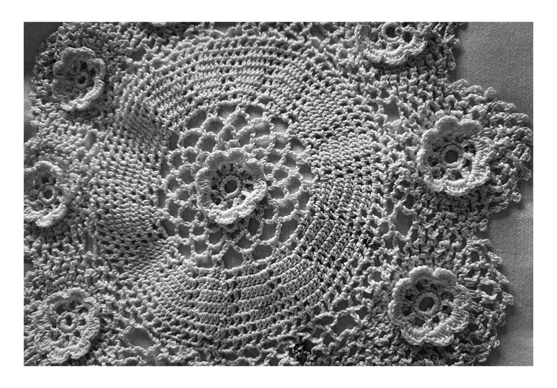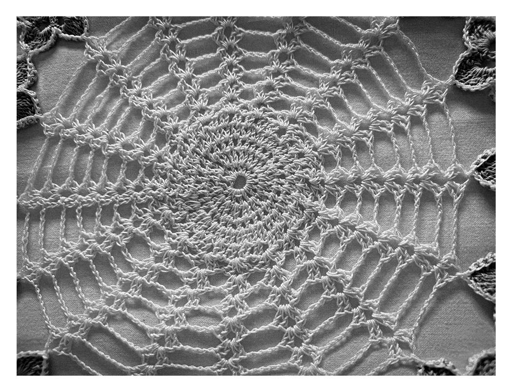 “Cobwebs are just incredible – so delicate and yet surprisingly strong against all wind and weather. It’s really rather sad that their makers have such a bad press with many people. We once made a long car journey and were quite amazed while watching a spider come along with us, hanging onto its web, which festooned our car mirror, occasionally retreating behind it for shelter when we reached high speeds on the motorway. I have loved doing crochet ever since my mum’s friend taught me at the age of 14, and although I now suffer from a dodgy wrist from overuse, I am like that spider, clinging on for dear life, making my cobwebs.”