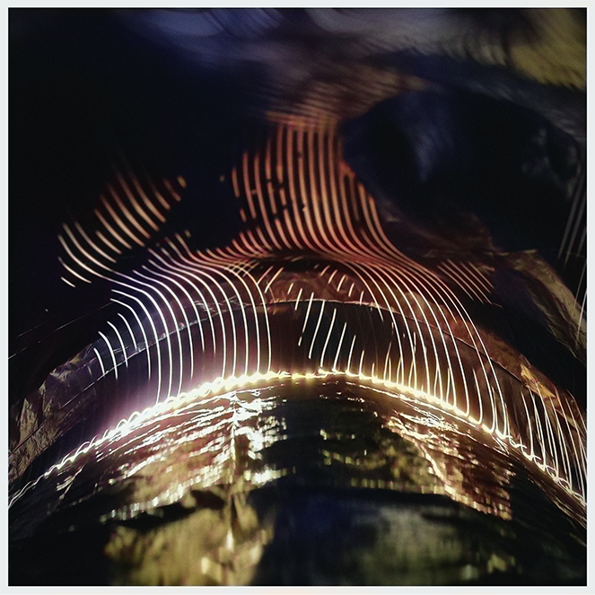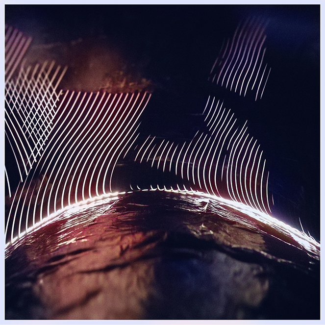 These long-exposure images—produced for The Kick-About No.118—were originally produced ‘in-camera’—with a table-top covered in black dustbin sacks and a strip of mains-powered LED-lights. The blurs and distortions were produced by photographing through some thick glass tumblers. The curvature of the planet surface was then produced digitally—just by grabbing the horizon line and giving it a good yank.