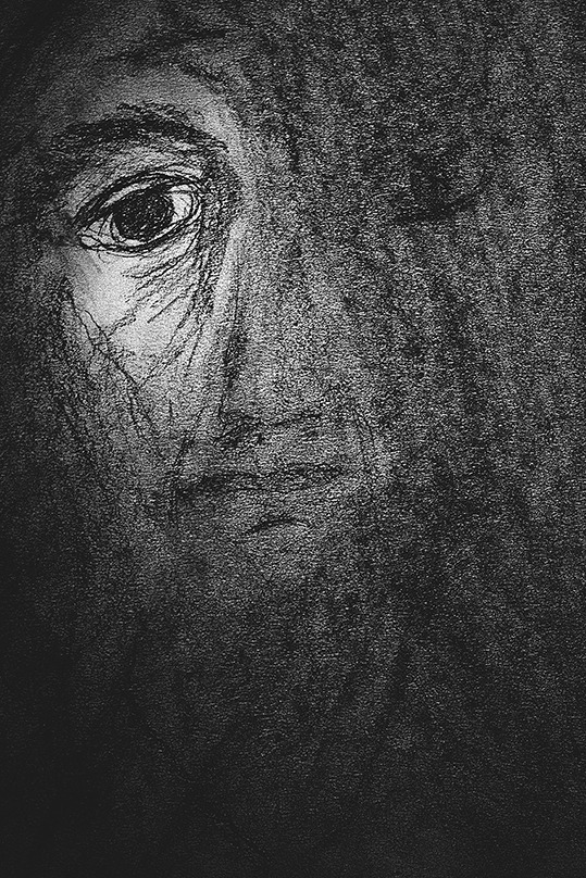 “Self-portrait is a daunting prospect, requiring one to be honest and reflective. Draw what you see, not what you think is there. So I’ve tried to do just that. As some of you will know, I have restricted vision so this drawing aims to show exactly what I see. I positioned the mirror some 30-40 cm from me and tried to ensure that I focused in the centre of the mirror each time I looked at it. Normally I would ‘scan’ my reference material so that I create an image from a patchwork of mini-views, but in this case, I focused on just the one. It was an interesting exercise!”