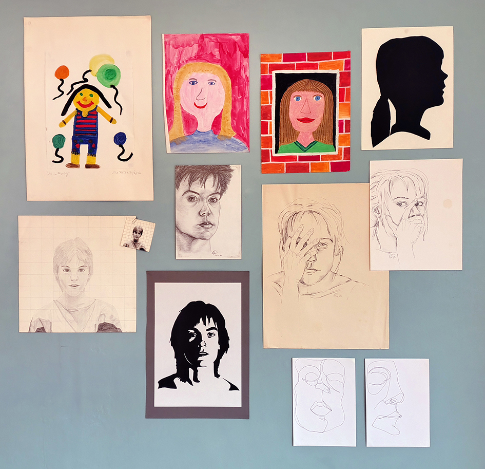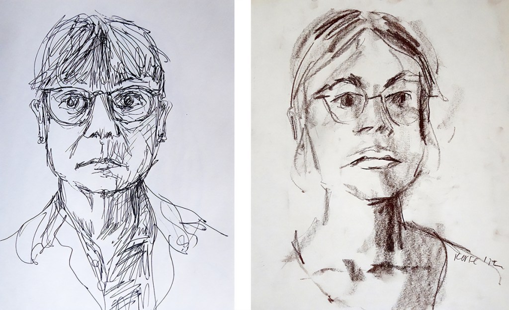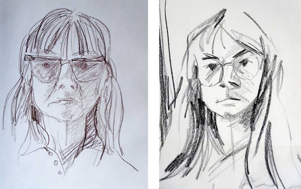“Two drawings, the earlier one, which looks very much like my best friend from adolescence, Alice, was drawn in 1972. I really like it, even if I don’t think that’s what I looked like then.”