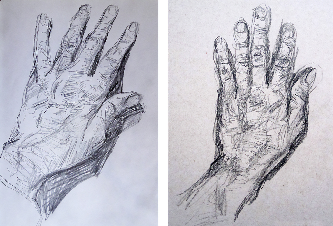 “I’ve done a lot of drawings of my hands over the years—left hand drawn with right hand, right hand drawn with left hand. The earlier ones are from the early 2000s.”