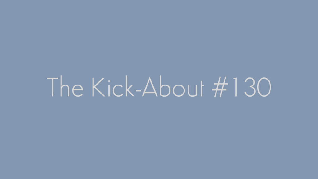 For the purposes of this next Kick-About, all you need to do is get in touch to tell me which of your submissions from this year’s KAs you’d like me to feature in the anniversary edition – and why. It might be because you just like it the most, or it pushed or challenged you in someway. Just let me know, and FYI, year five of The Kick-About began at Edition No. 105 (Mark Rothko). If I don’t hear from you, no worries; I’ll just choose one of your submissions that I particularly like. Have a think and I look forward to hearing from you.
