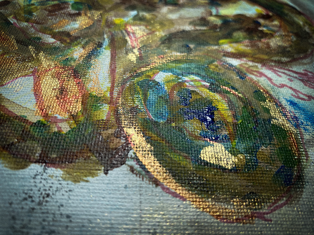 “I have a few glass vessels of twigs and shells and rocks – my treasures – so I took a few bits out and fiddled about. I’m happy with the image but it has no relationship to treasure trove apart from its origins, but it feels upbeat so nice to share.”