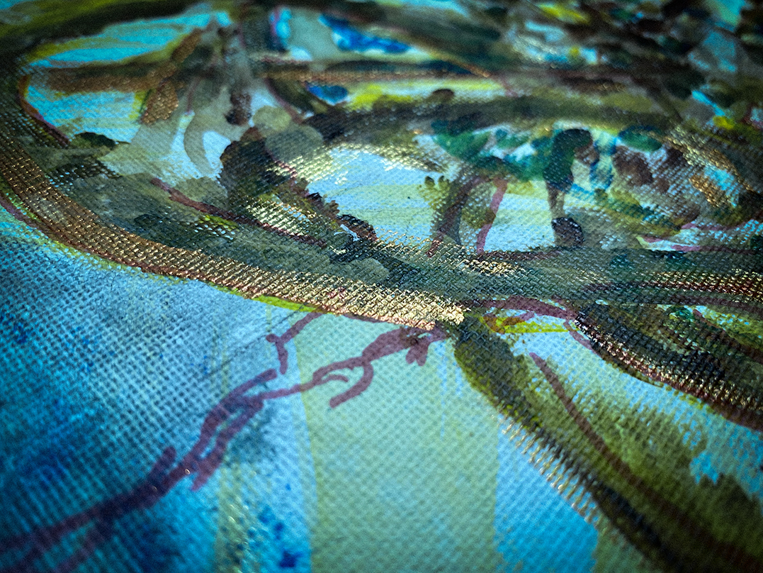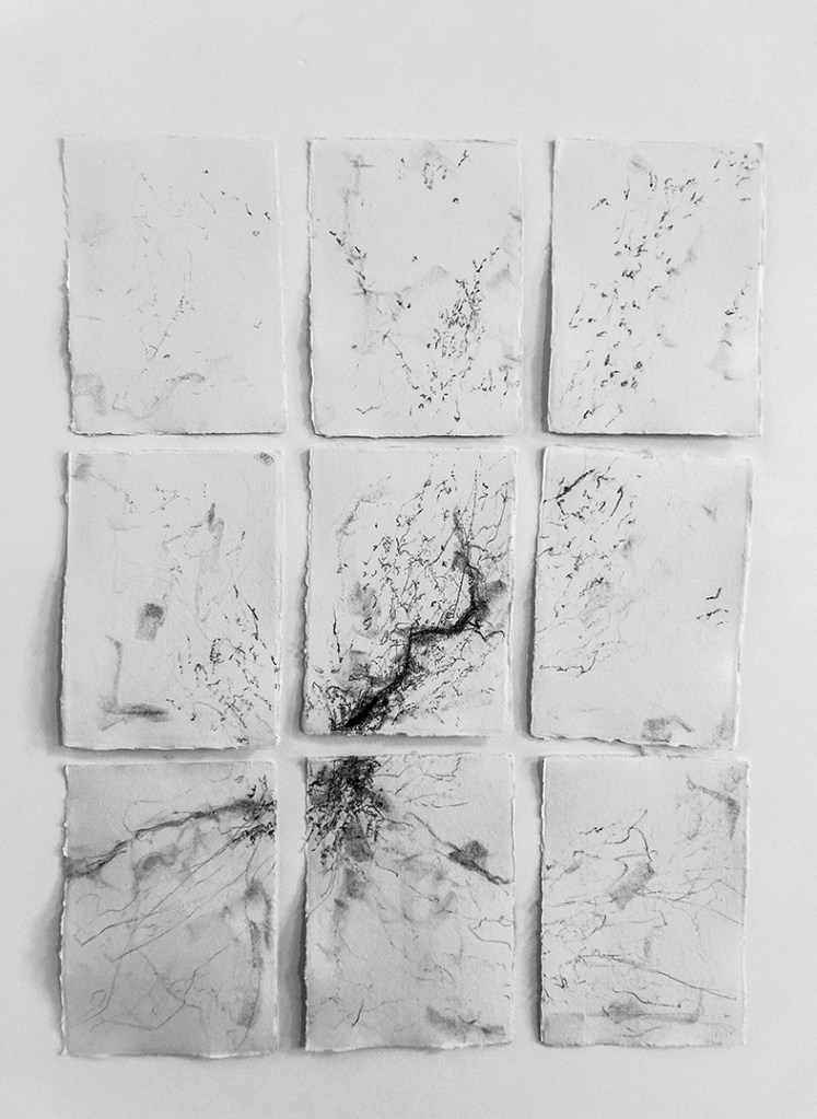 “It didn’t take long for multiple waves of inspiration to strike when it came to tackling this latest Kick About prompt of ‘Treasure Trove’. Initially, I knew I wanted to continue building on the body of insectoid themed work that I began during Emerge (purely because the use of simple marks as a way to depict bugs fascinates me), and the obvious connection there was to explore the nests of those clustered creepy crawlies that often lurk under the surface. Taking this, and merging it with the idea of ragged pieces of ancient maps detailing the hidden loot of swashbuckling bandits, drove me to creating a larger contemporary piece built on marks, materials, and the hidden wealth of hives.”