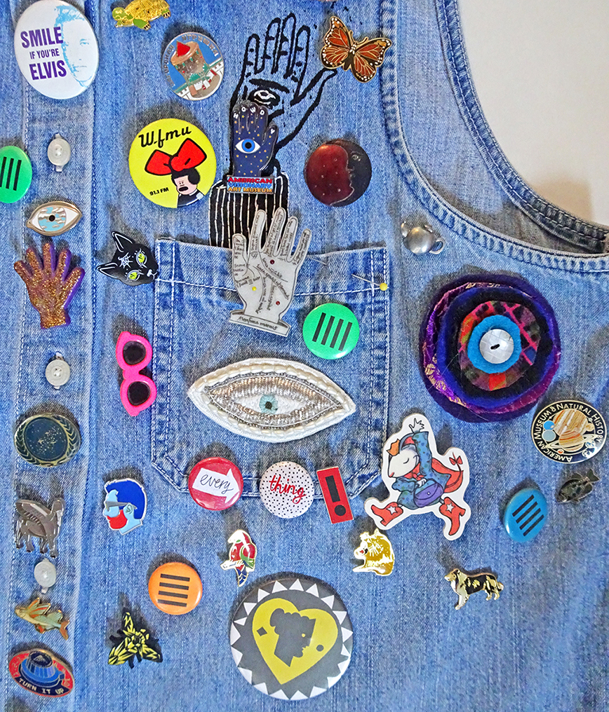They became a collection arrayed on a denim shirt purchased from eBay that had been embroidered with hands and eyes.