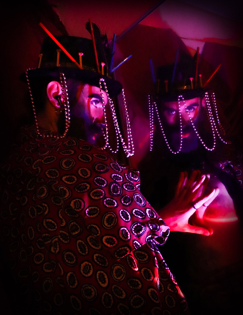 “I decided to go with ‘Chinelos’ because I particularly enjoyed the creation of this Kick-About. I loved scouring through old costumes to find pieces that I could alter and pair with other pieces. I loved setting up my camera and doing the makeup that I had from a previous Beetlejuice costume. I adored prop-styling the scene using throws and mirrors and lighting it with a cheap but powerful sunset lamp. Making all those plates spin—using what I had to make the most theatrical output possible—was such a joy and I want to do more of that. I really felt like a Chinelo!”