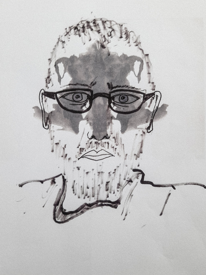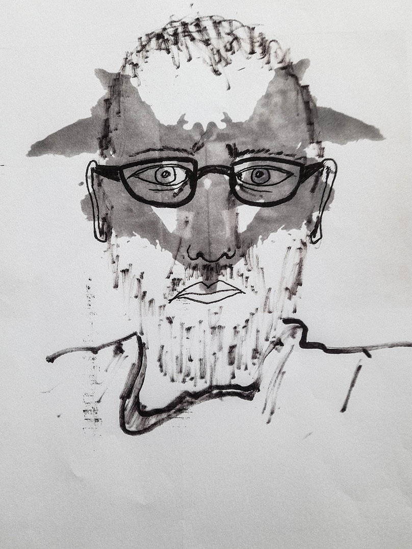 “My choice is the Rorschach Test—not for the resulting artwork, but for the process, which I enjoyed for its unpredictability. It threw up some surprising results—not always successful, but (to me) interesting nonetheless, and it gave me the chance to mess about with pen and ink. It reminded me of that old life-drawing exercise: not looking at the paper, only the model… and then the shock and surprise at the strange alien creature that’s appeared—legs merging into chests, features floating away from the face…!”
