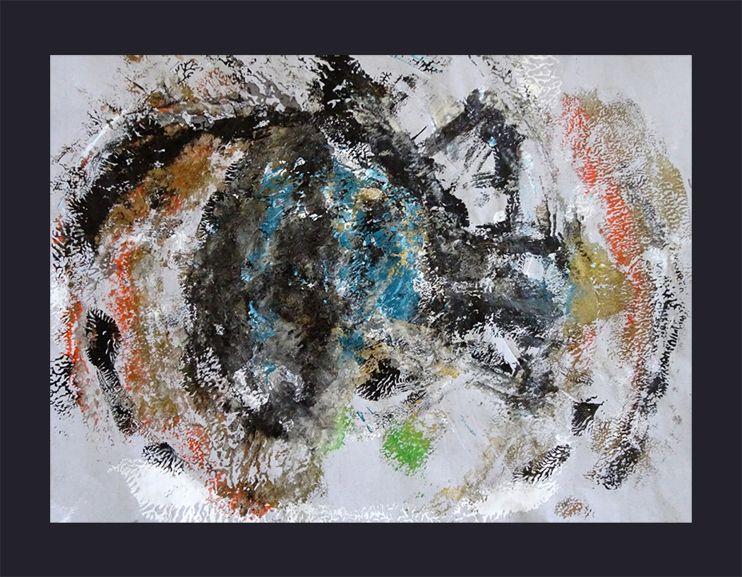 “I had intended a painting entry but the small work took a turn for the worst! Luckily I had been working on an electronic image that had a structure in it that could be adapted. So with a few modifications and some additional image layers… “