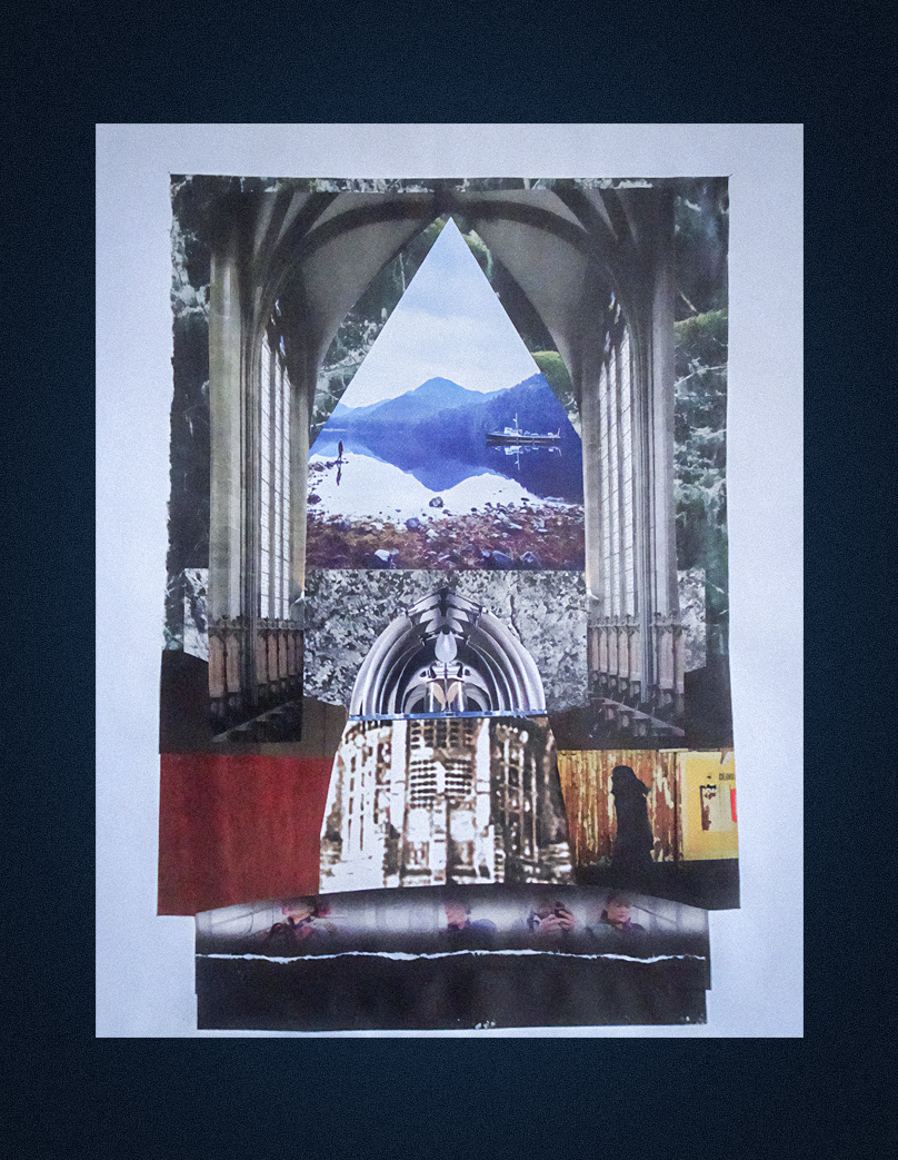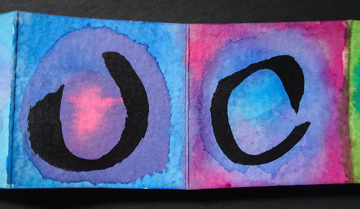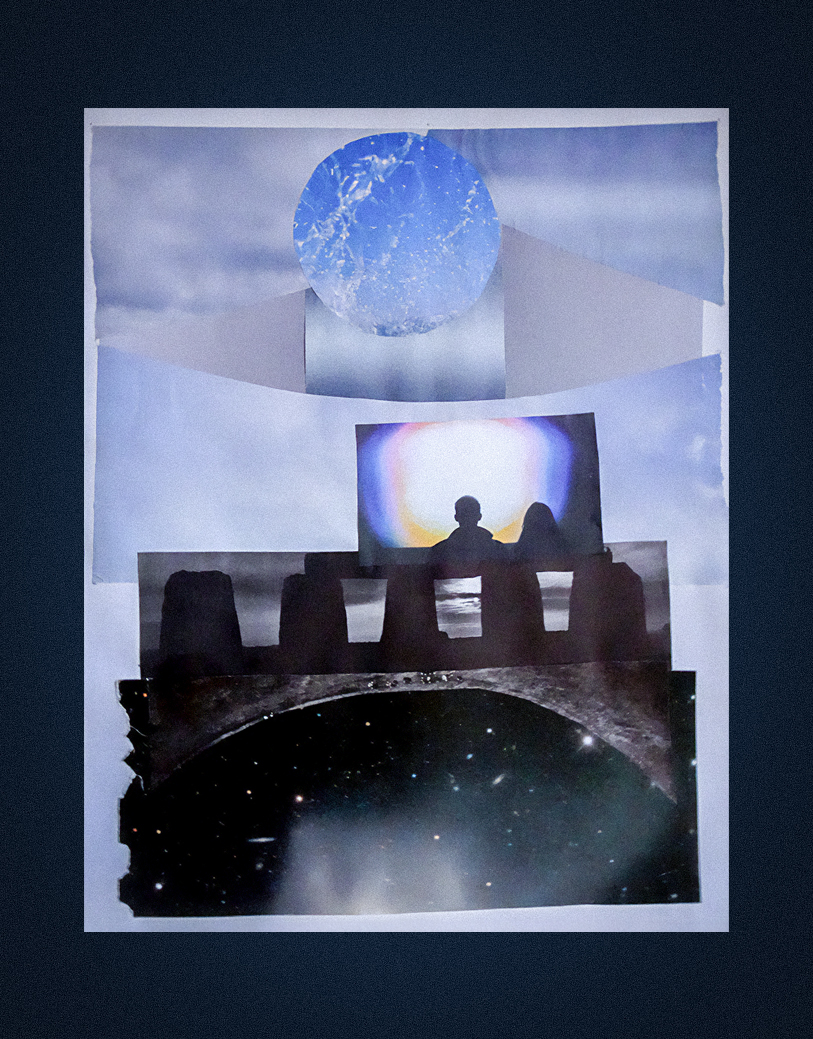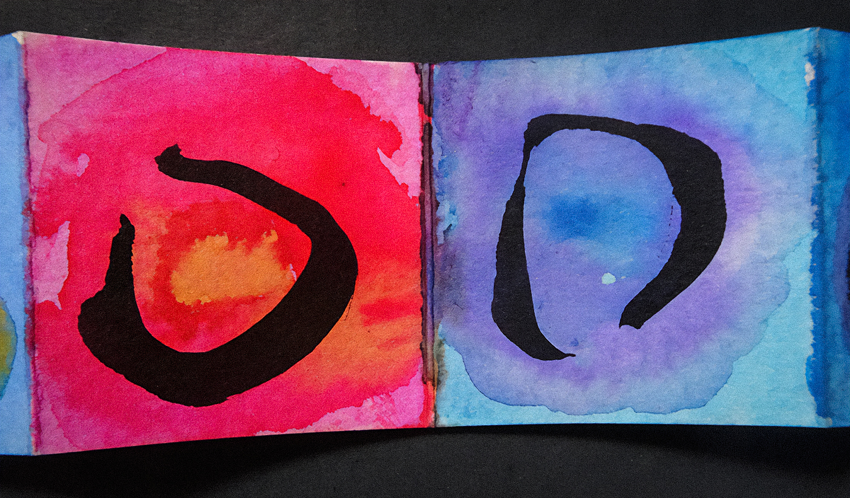 “My sister-in-law gave me a tiny accordion book a while ago which I immediately filled with ensōs. But I was not sure what else to do with them. Turrell’s circles of light fit them perfectly. I was also intrigued by his structures, and did a few collages inspired by them. I’m sure I will return to this idea in the future as it is reminiscent of the shadow collages I’ve been doing. And a little poetic commentary.”