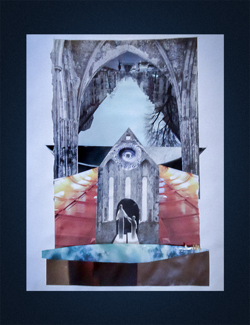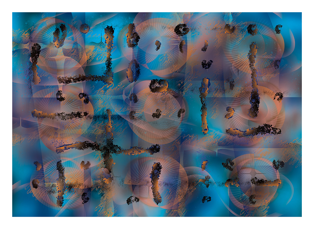 “So I knew of James Turrell and jumped in with a layer on layer approach to an image of a slit into a void which created a pleasant outcome. It made me jump to create a portal to another world – and after taking a few street pics of textures I came up with a grungy-er approach to a portal device. A third image evolved from this one which was a layered abstract version of the previous iteration. Lots of fun – made me question Turrell’s root meaning by the end.”