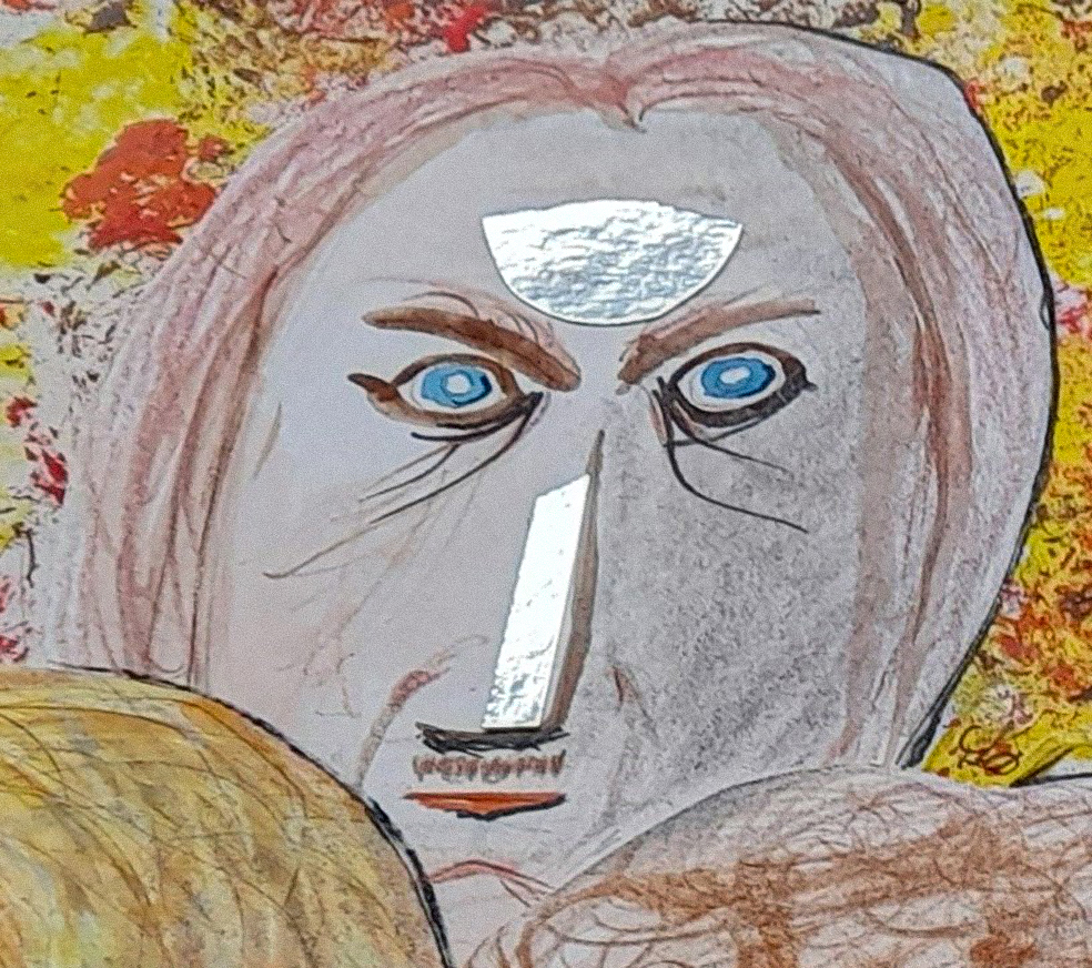 “I knew nothing about Alexej von Jawlensky, and again I needed to explore. The K-A is actually titled “The girl with the green face” and that painting is amazing. When reading some background to the artist, some particular things jumped off the page, notably reference to a series of paintings known as “Mystical Heads”. The artist also produced others titled “Abstract Heads” and “Constructivist Heads”. These works pointed the way for the artwork that I have produced. On standing back and looking over my artwork, I had the feeling that I was back in the 1960’s!”