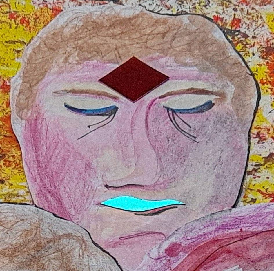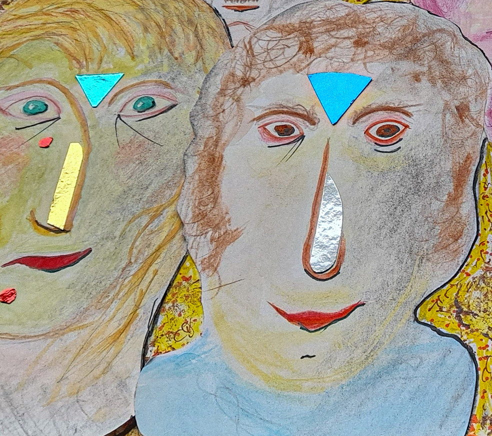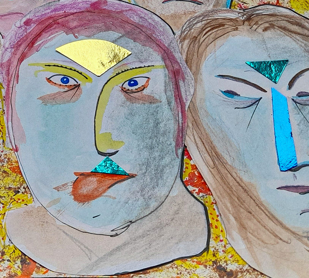“I know the subject matter is not reminiscent of Alexei Von Jawlensky but I loved the use of such vivid colours in his subjects and wanted to do something hands-on. I have had a hankering to explore queer themes lately and to use up the many canvases I have lying around so these paintings are primarily done with oil pastels and colouring pencils..”