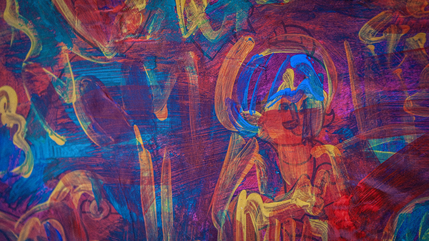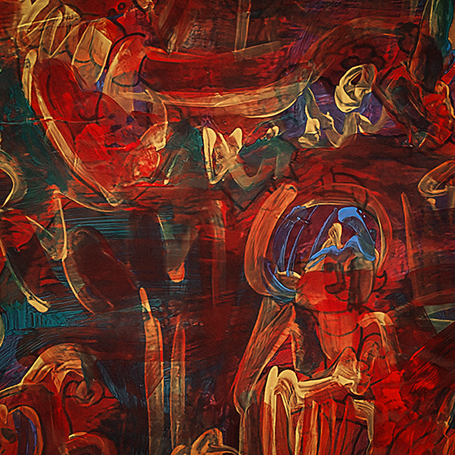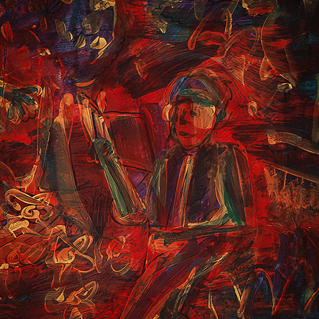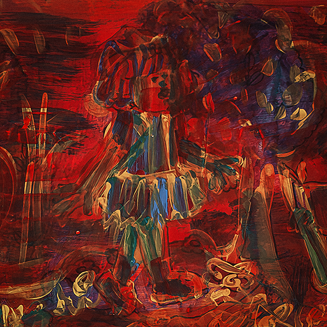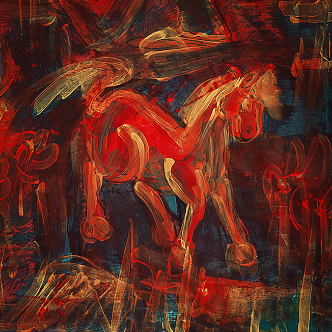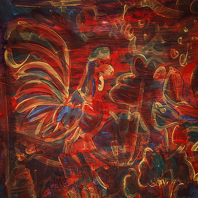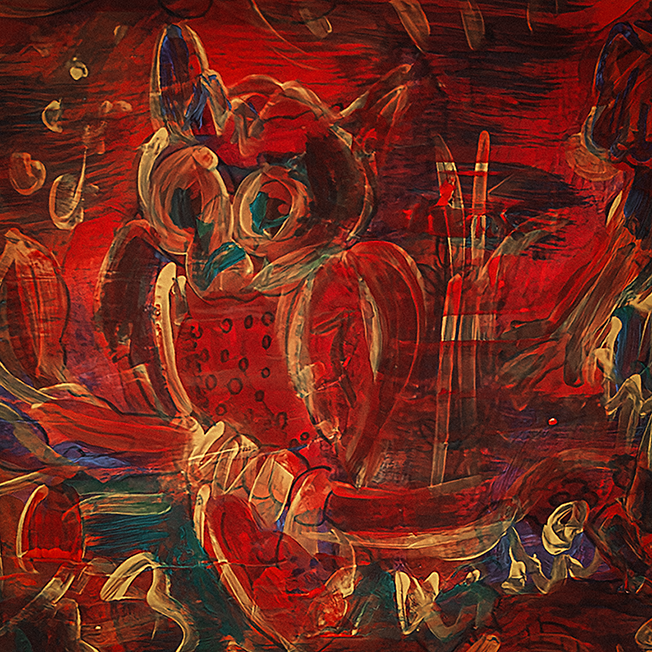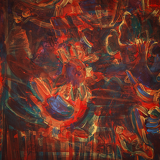 “This idea began with that criticism often levelled at expressive, Modern paintings etc… the one that goes, ‘My four year old could do better than that!’ I imagine similar comments were made as people stood before Fauvist paintings with their mouths open in outrage. I tore a few pages from a Super Jumbo Colouring Book and stuck them down on a bigger sheet of card, then proceeded to ‘paint inside the lines’—and then outside of them too, dialling up the colour with each pass. Not sure what I ended up with, but someone, somewhere is probably saying, ‘My four year old could do better than that!’”