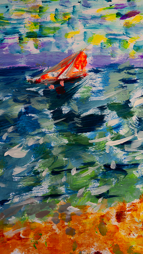 “If Fauvism sprang from Two Young Men Go Wild in Collioure, then this submission is One Old Dear Gets a Bit Silly in Whitstable. I love the freedom of this painting style. Originally, I painted in some beach huts, thinking their static solidity might emphasise the fluidity and movement of sea and sky. But the huts looked as if they’d wandered in from another painting, so they were finally edited out. This KA was a joy — I loved it!”