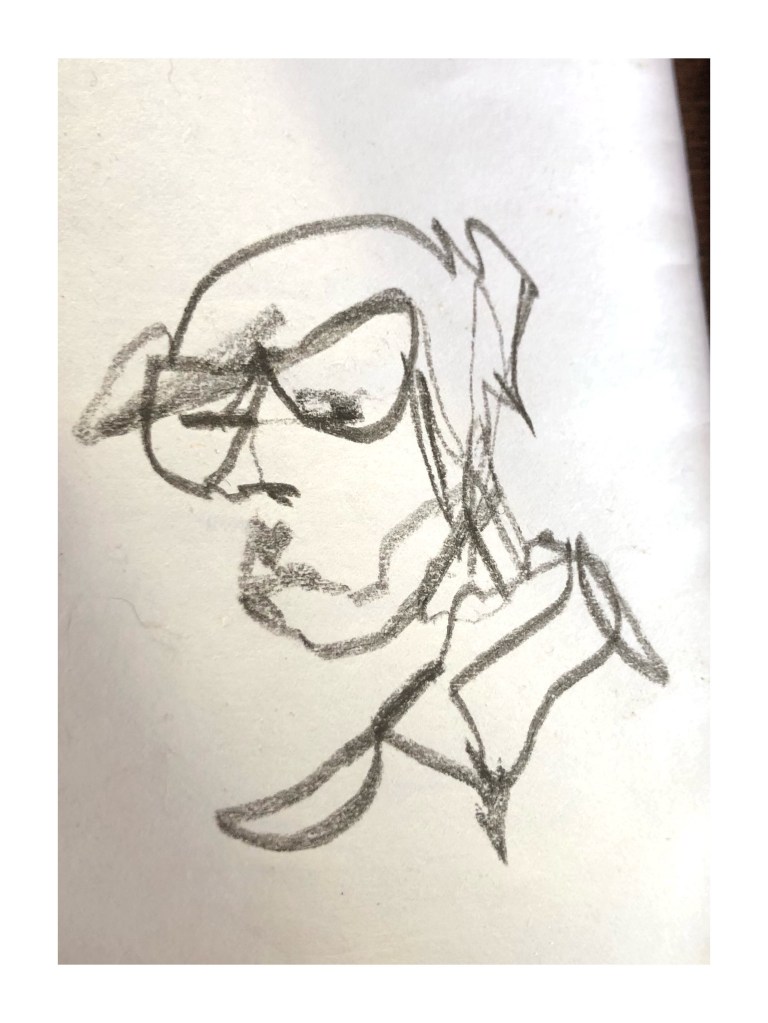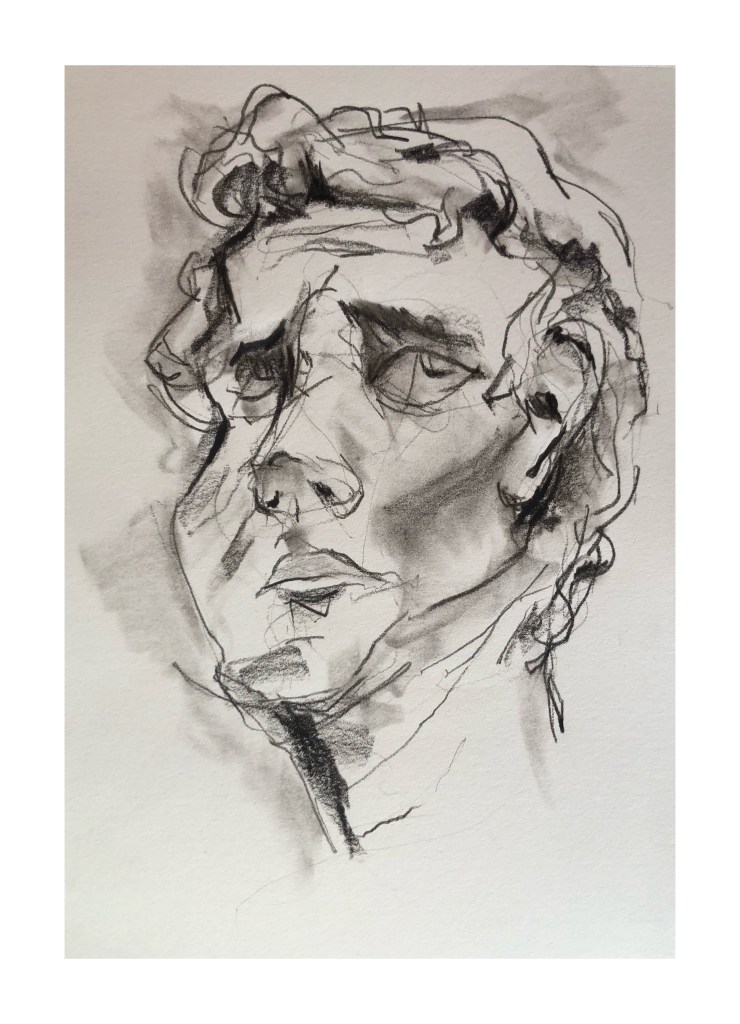 “I’ve really enjoyed leaning more into expressive drawing in the past year, experimenting with blind contour drawing and marking making has really helped me get over my anxieties around achieving likeness and something closer to what my eyes can quite literally see in front of me. I was initially planning on using my camera to take on this latest Kick-About prompt, but in the interest of honestly showing my workings, the below blind doodle of Lorraine Kelly’s fashion correspondent made whilst working one morning steered me in a different direction… The 30 second sketch was made with a completely absent mind and is only around 8cm in size, but the frantic energy I can see in the lines immediately made me think of this fortnight’s prompt; Donatello among the wild beasts. With marks acting as my beasts, and armed with the inspiration of this daytime television doodle, I looked to Donatello’s sculpture of St George as a pathway to making something just as energetic but slightly more refined. Quite literally, a Donatello amongst wild beasts…”