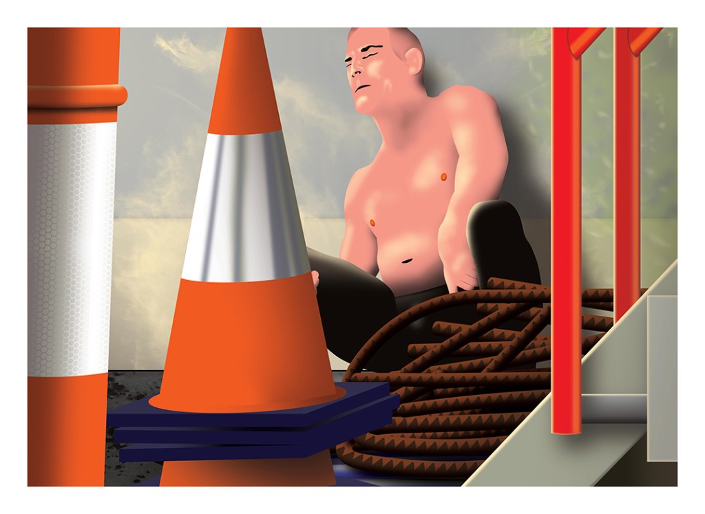 “You have to love a pagan party – particularly the spit piggy cooking away. Then I thought, what would happen if the gods paid a visit to Brisbane for a late-night fling? They would probably end up down along the river waterfront, where there are a lot of bars and restaurants. Then after the party, where would a drunken god end up? Possibly down at a big riverside construction site – somewhere to pass out! Sorry, I don’t know where this stuff comes from!”