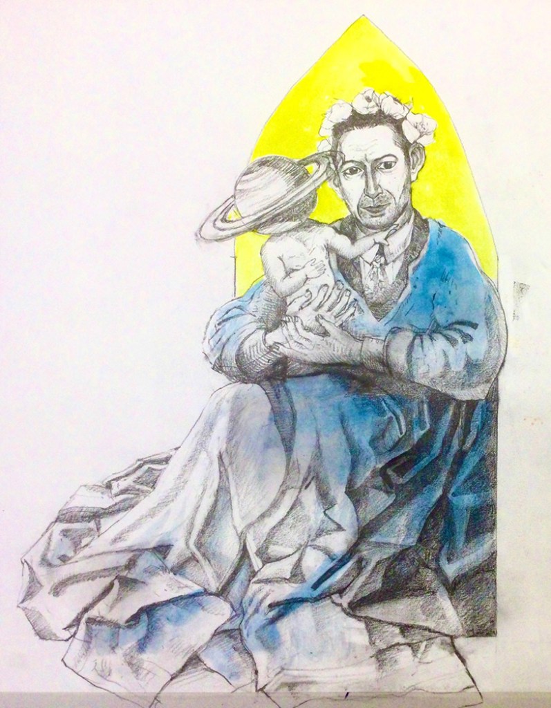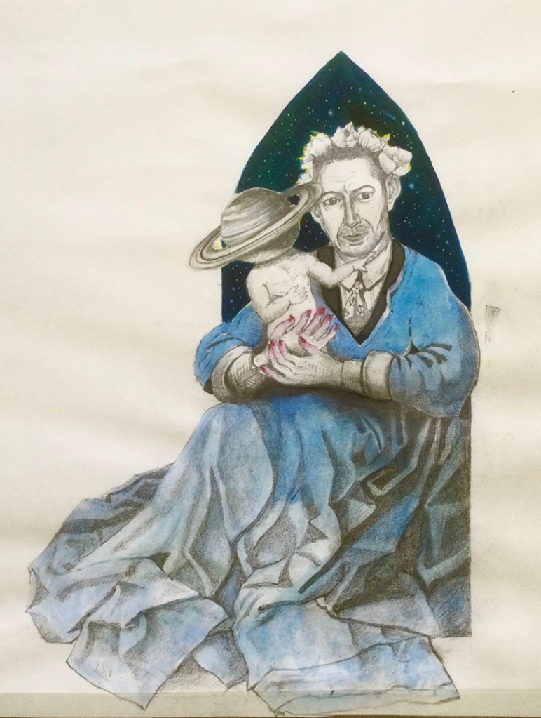 “It’s a take on the Christian Nativity, but cut through with Saturn and Saturnalia, where everything is turned around dress-wise. Actually, panto would’ve been a fun direction to take it — but too late (oh no it isn’t!).”