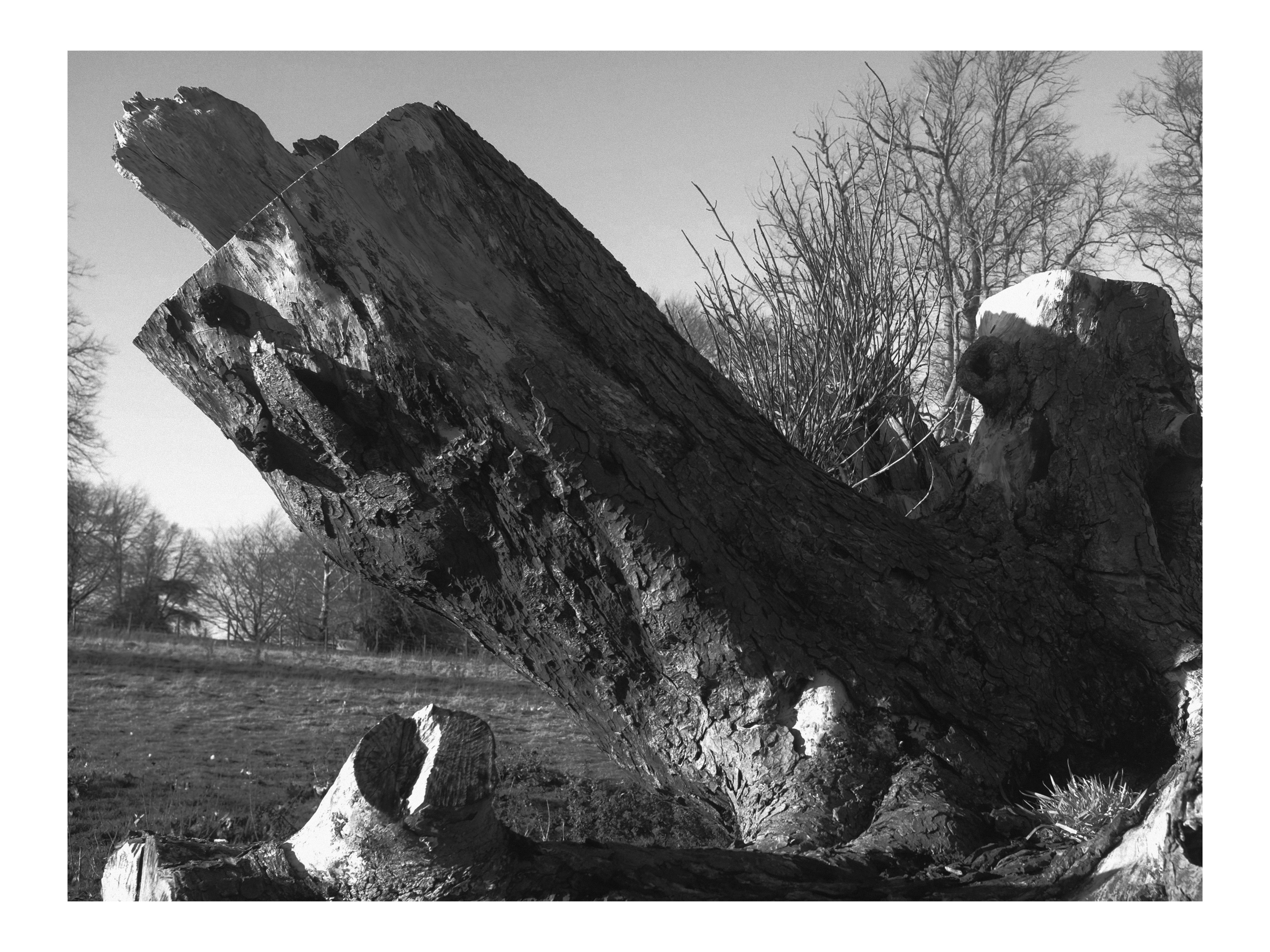 “This past weekend I sat down to watch Clint Bentley’s Train Dreams, a beautifully shot film exploring the themes of impermanence, friendship, and death through the life of a logger living through the turn of the 20th century in the Pacific Northwest. The film is stunningly to look at, so much so that I couldn’t believe that this wasn’t shot on film when I stopped to look into which DP had brought these gentle moments of a man’s life to screen. Shot in it’s entirety at 4:3, with the intention of evoking the feeling of looking through treasured family photographs, Train Dreams inspired me to pick up my own camera and shoot in a similar style for this week’s Kick-About outing. Hoping to evoke a similar feeling of impermanence whilst keeping our collective Almond Blossom prompt in mind, my chosen subject was a small collection of stumps and fallen trunks that I absolutely adore near our house in Kent…”