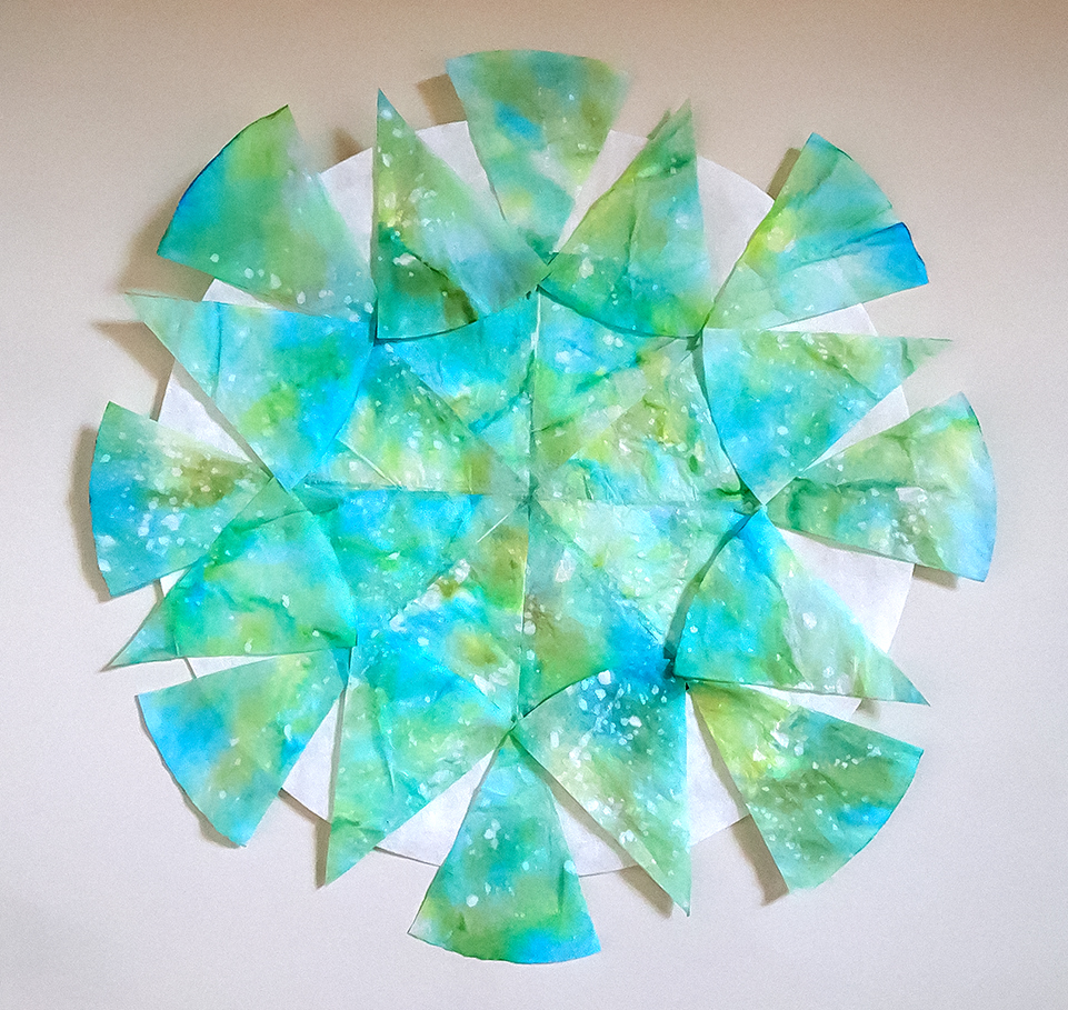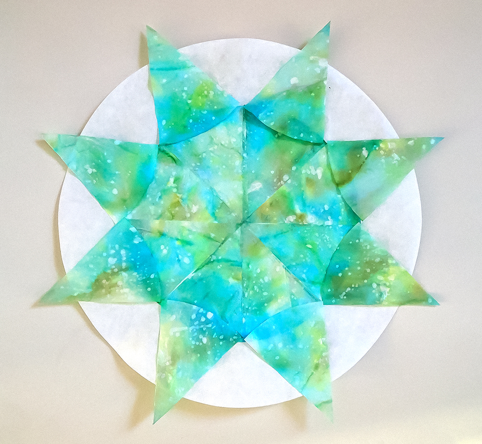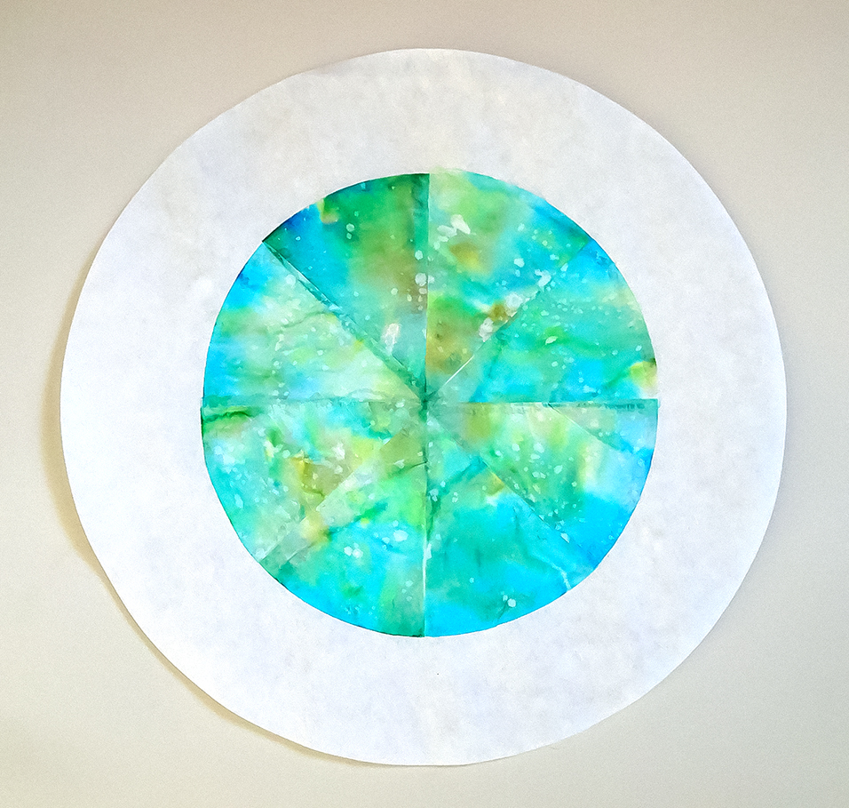 “I haven’t painted in a while, so I decided to simply play with the beautiful colours in Van Gogh’s painting. Then I took three small mandalas and cut them up — as you know I like to do — and rearranged them in a few different ways.“