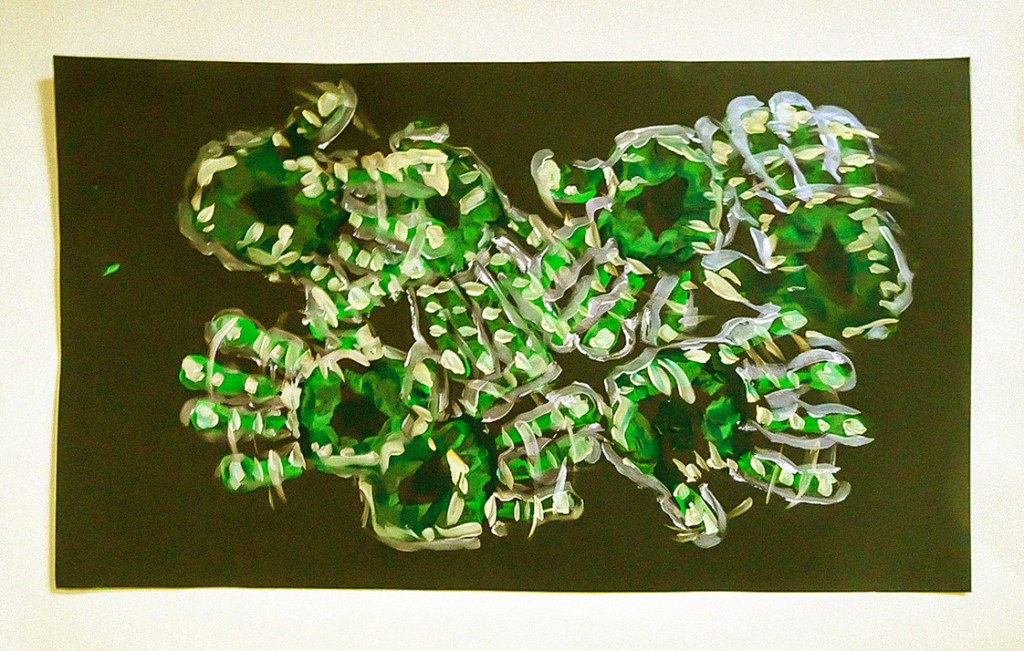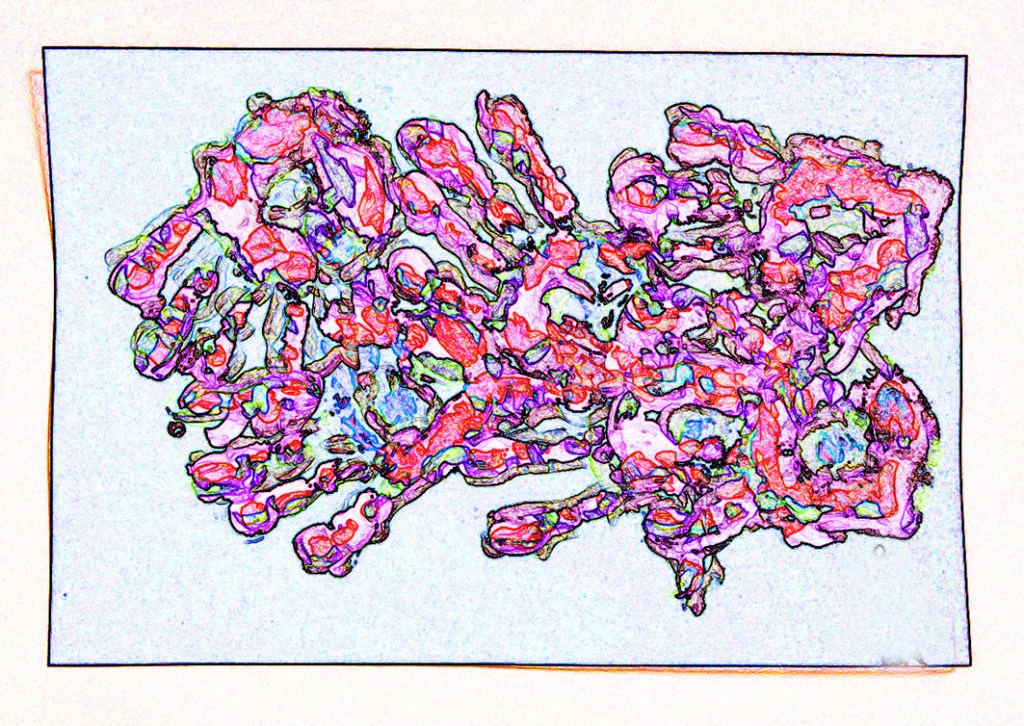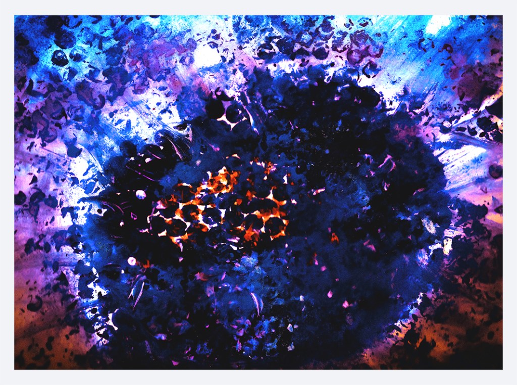 “Fascinating subject this Kirlian Aura. I would have like to try different techniques and subjects but only got time to try this group of mono prints with ink and alcohol. I am sure the inspiration will stay with me for a long time and crop up in my artwork again.”