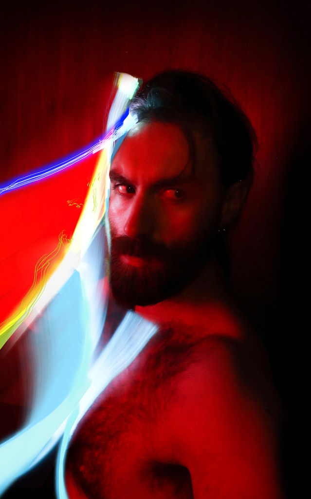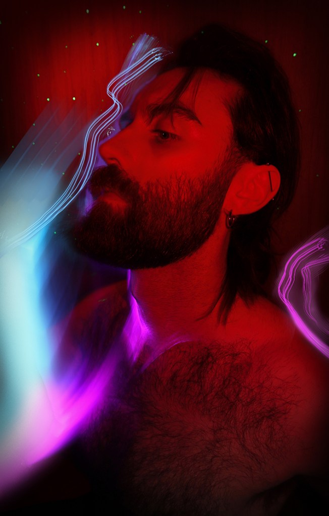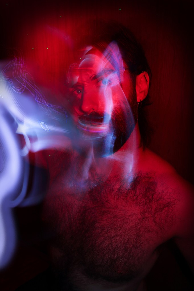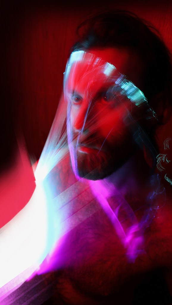 “Whenever there’s a chance to play around with lights and long exposure, I’m always game, and it felt fitting for Kirlian Aura. I used a cheap fibre-optic lamp for an idea I’d had for a photo shoot a long time ago — something I’d tested but never really brought to fruition. This time around, I’m glad I got it to a point I’m pleased with, because it was actually quite difficult to do… at least at first. Long exposure tracks every hint of movement, so many of the photos came out blurry. I think leg day at the gym is paying off, because I was in a squat position for a lot of them, trying my hardest not to move myself while also moving the light for between eight and fifteen seconds at a time. Some of that blurriness worked in my favour; a lot didn’t.
