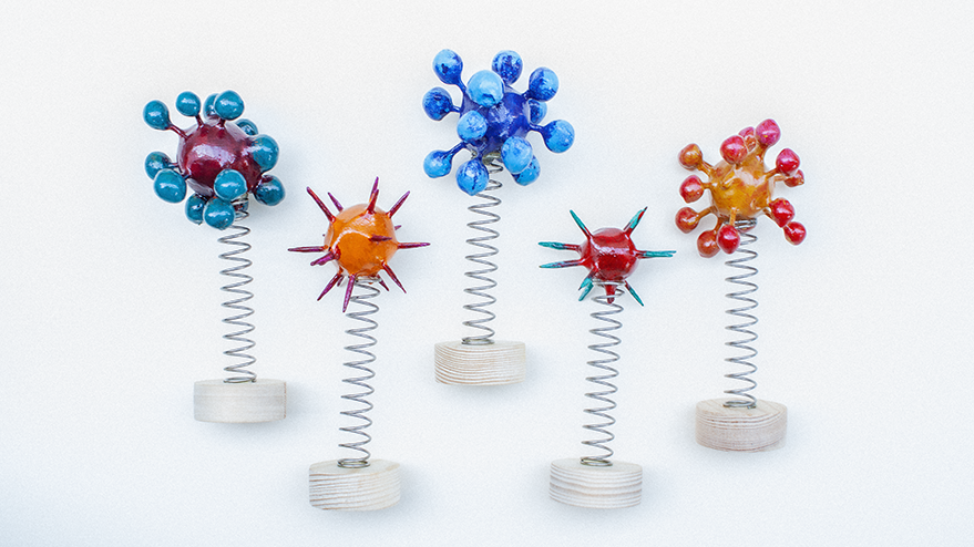I was also thinking about those oversized models of molecules I’d seen at school and in books — tactile constructions of coloured balls and spokes. And then there were those toys you see stuck on car dashboards — nodding dogs, hula girls, swaying flowers — set moving and shaking at the slightest vibration.