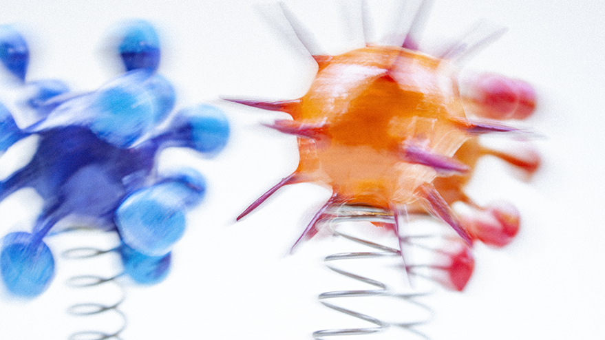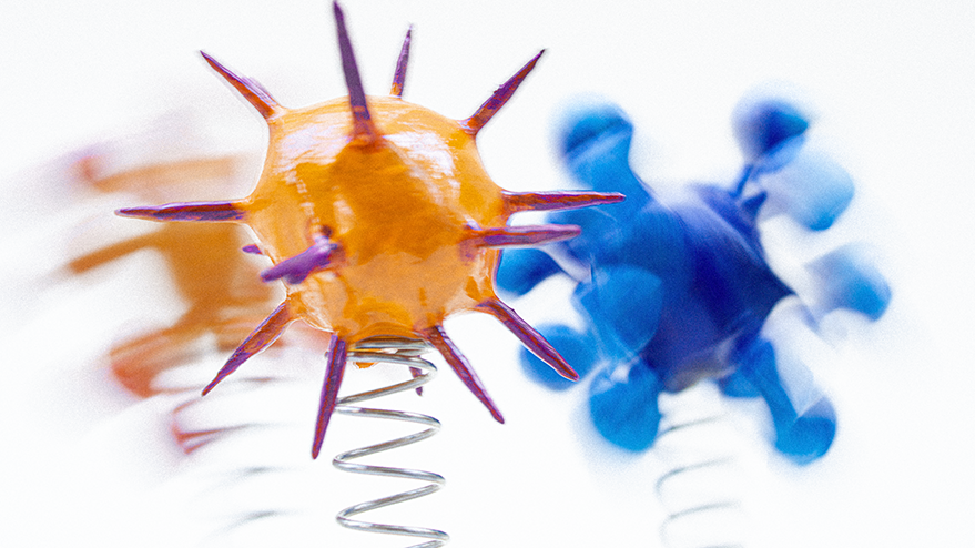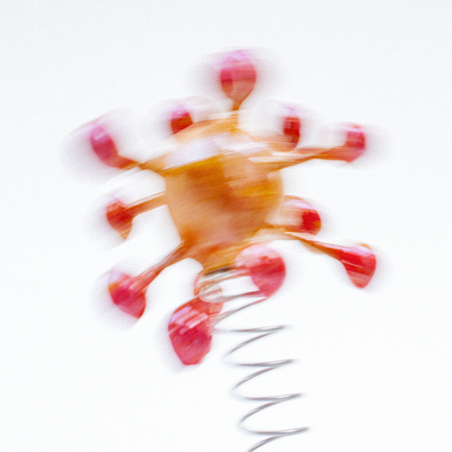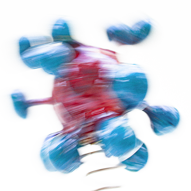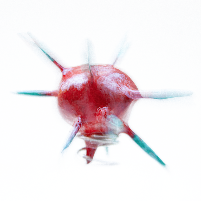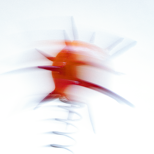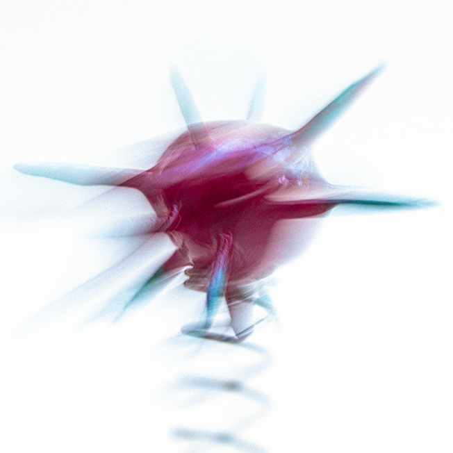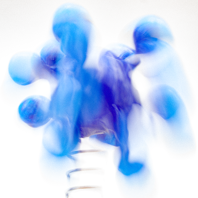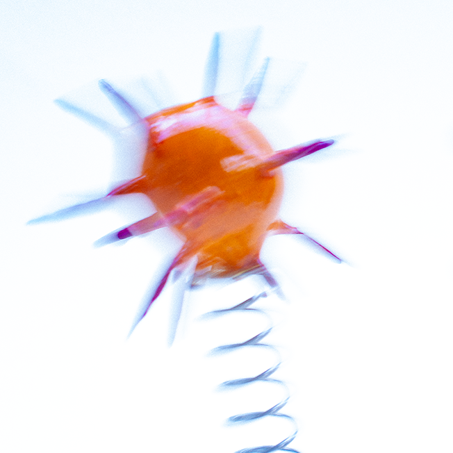 With all of that in mind, I set about making a series of molecules, pathogens, neutrons, electrons, quarks — whatever — built from balls of air-drying clay and cocktail sticks. Once painted, I glued them to some compression springs and then set them jouncing around in front of the camera. I was mostly thinking about water molecules moving from ice to liquid to vapour, so turning these solid shapes into ‘smoke’ via a few seconds of long exposure.”