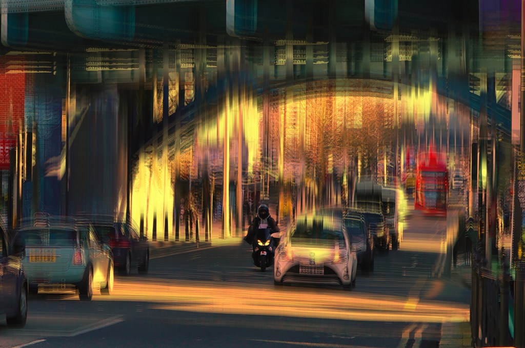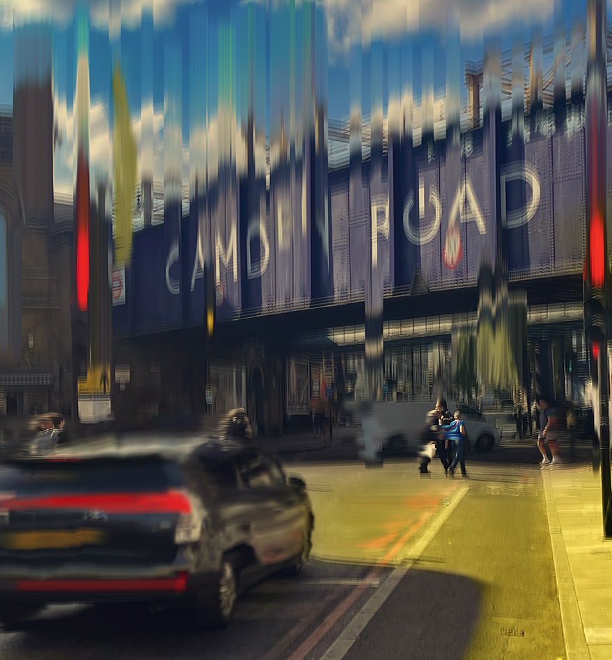 I searched through the many SD cards I have of random photos of London’s streets, as well as my photo library on my phone. I knew that I wanted to push the images further, to make them more painterly and respond to the prompt more effectively.
