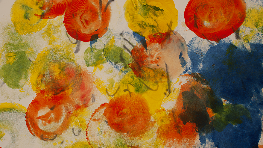 So the work I would submit for this annual round-up is the piece I created in response to the Lee Krasner prompt. Looking at her work led me to explore different mark-making techniques, and this, in turn, led me to filling balloons with water and rolling them through paint and then across paper. It may have been beginner’s luck, but I was so thrilled with the marks this made, and with the response the images evoked in others, that for me it epitomises the joy that Kick-About provides. And that’s why I’m looking forward to finding out what Year 7 has in store!”