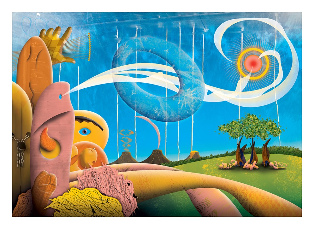 “Time flies, and it has been — and still is — fun! Thank you, Phil, for providing the home where diverse ideas come together in a safe environment. It’s so kind of you to let us into your kingdom, and thank you to all your fellow participants for being so inspirational. For me, James Turrell was the spark that ignited a shift in my perspective and added humour to my toolbox. I recently returned to this prompt image to pep it up — not sure if it’s there yet, but I’ve included the revision. I also just found out that the original version has gained admittance to the Stanthorpe Art Prize ’26, so thanks for this prompt in particular, Phil! Happy birthday, fellow Kick-About-ers. It’s so wonderful to be inspired by you all!”